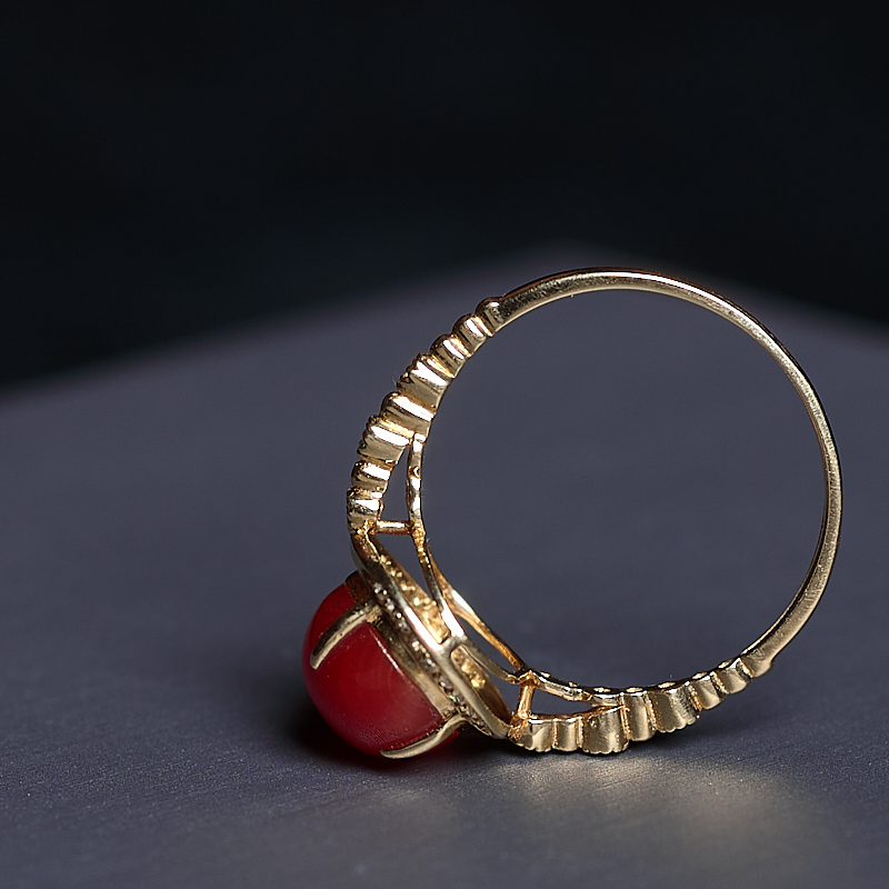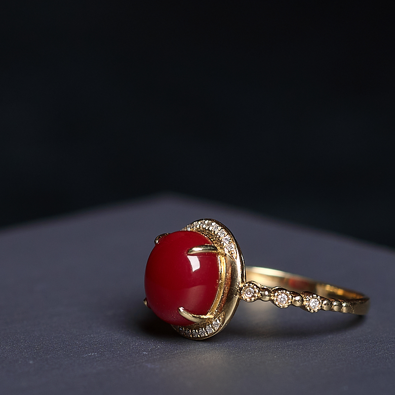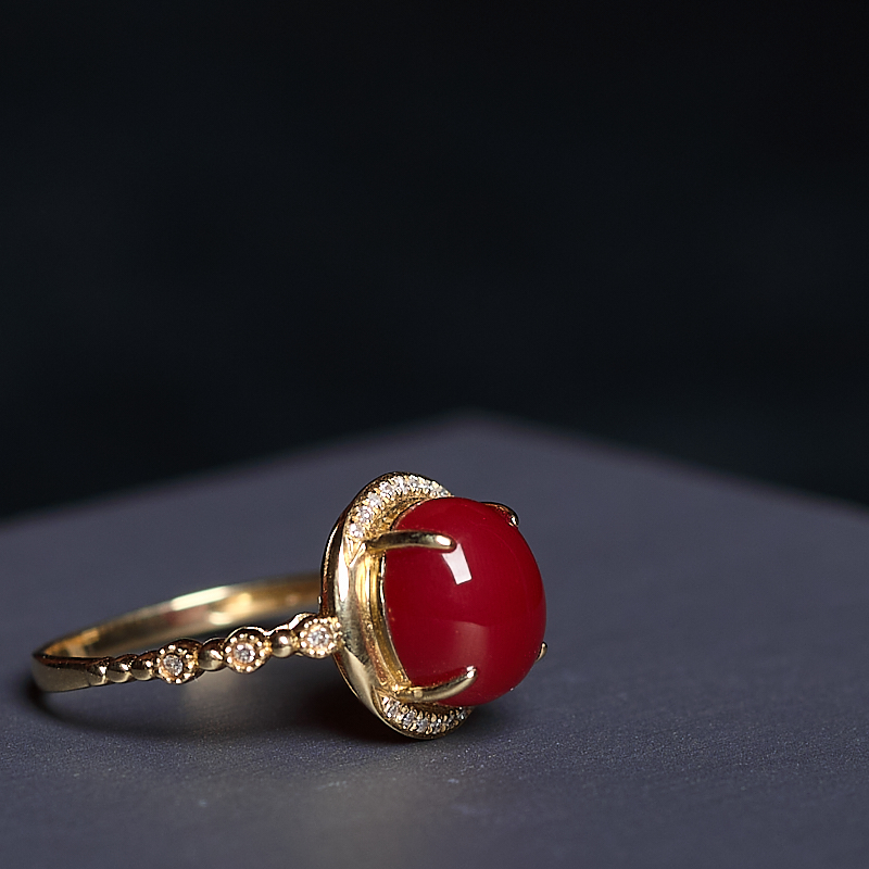 • 18K阿卡牛血红珊瑚戒指