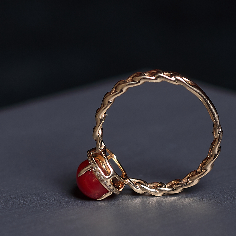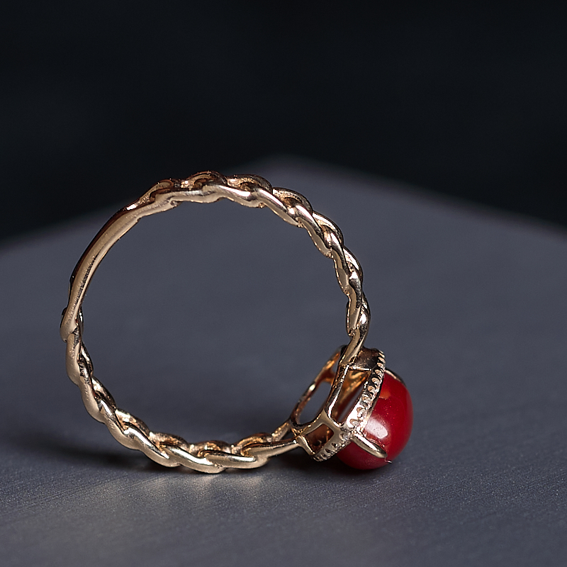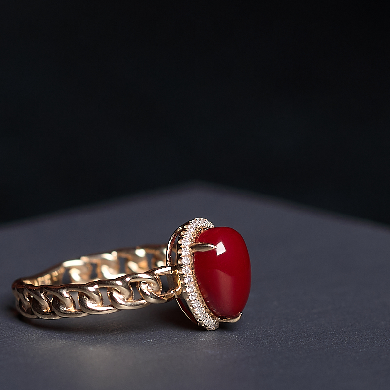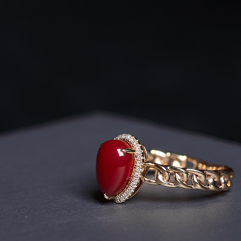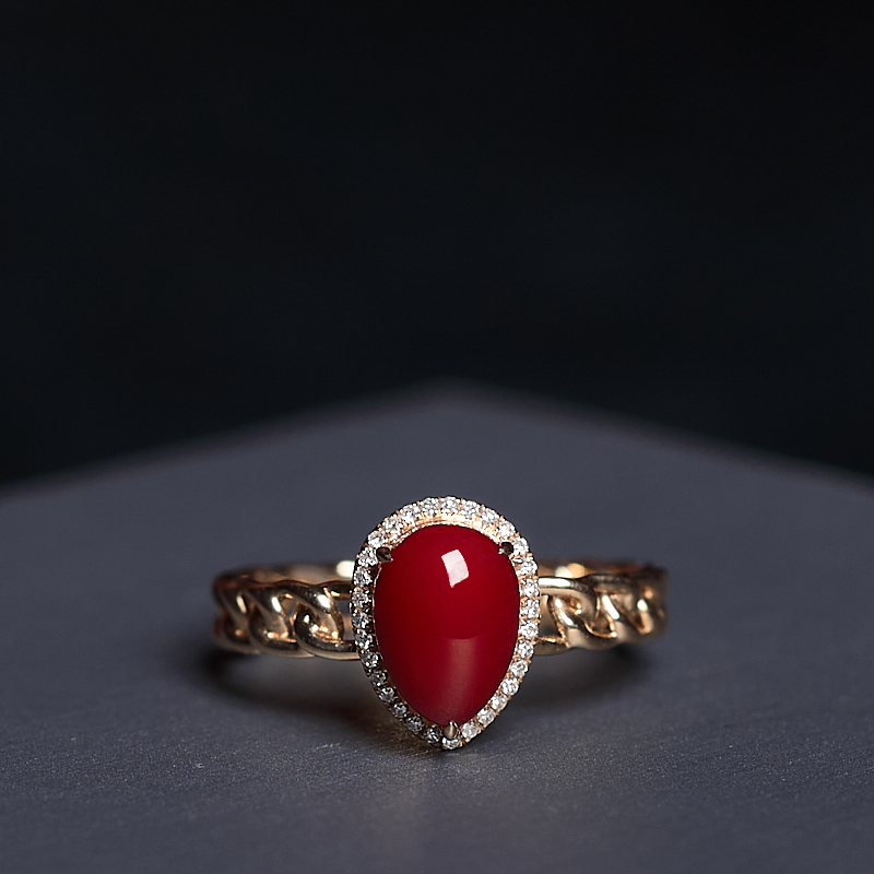• 18K阿卡牛血红珊瑚水滴戒指