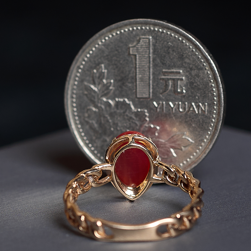 • [名  称] 18K阿卡牛血红珊瑚水滴戒指