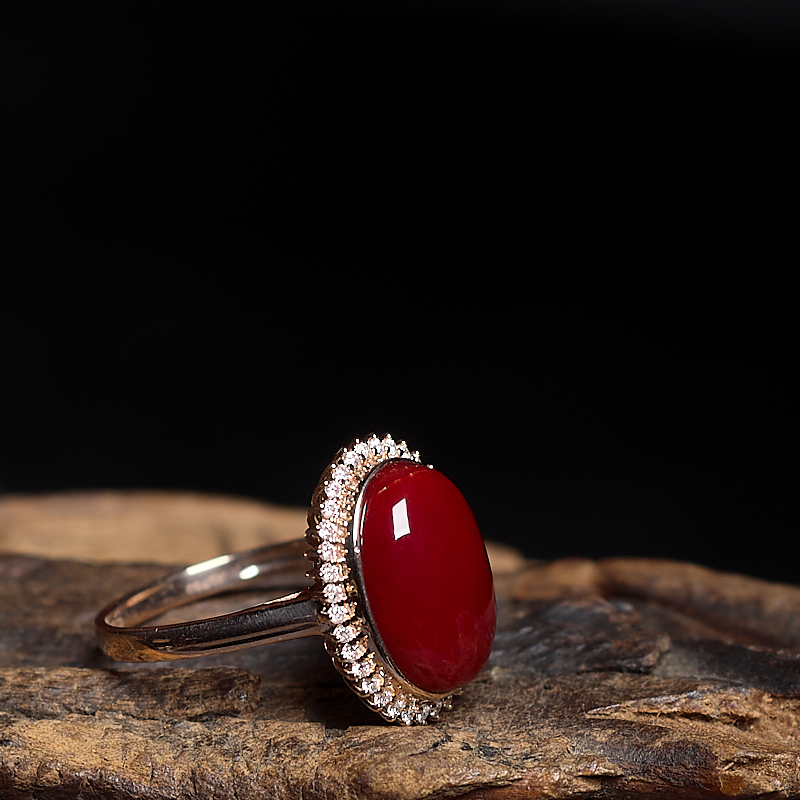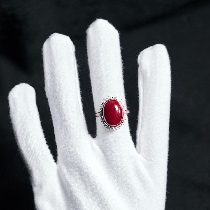 • 18K阿卡牛血红珊瑚戒指