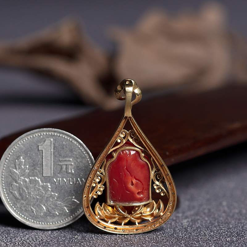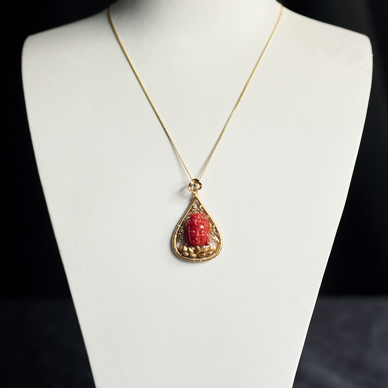 • 18K阿卡珊瑚观音吊坠