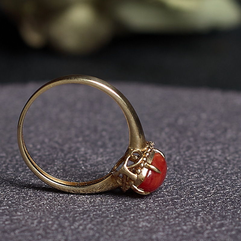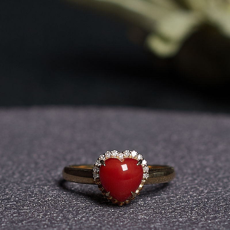 • [名  称] 18K阿卡牛血红珊瑚心形戒指