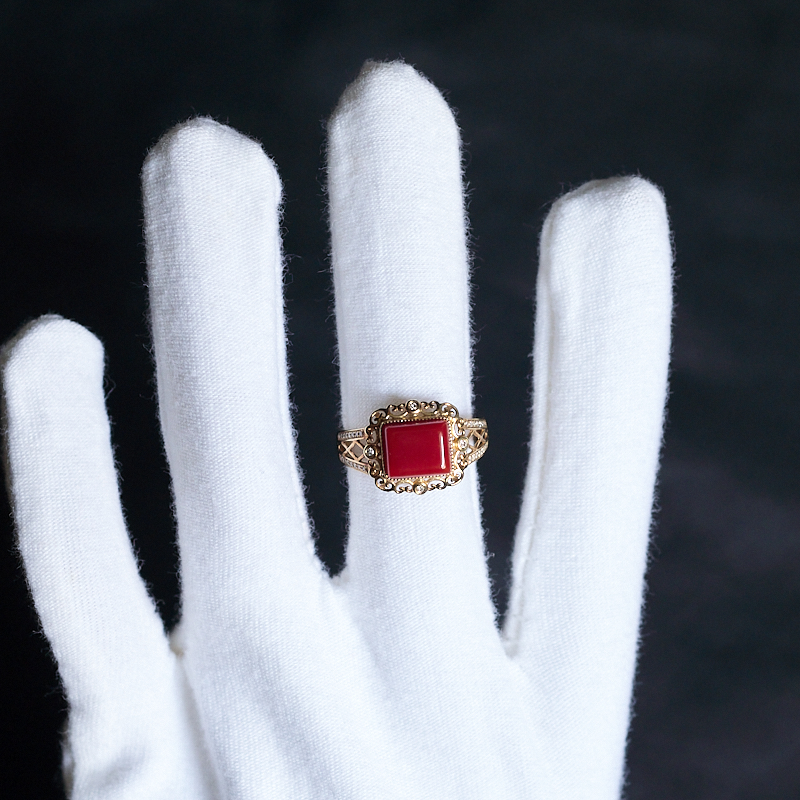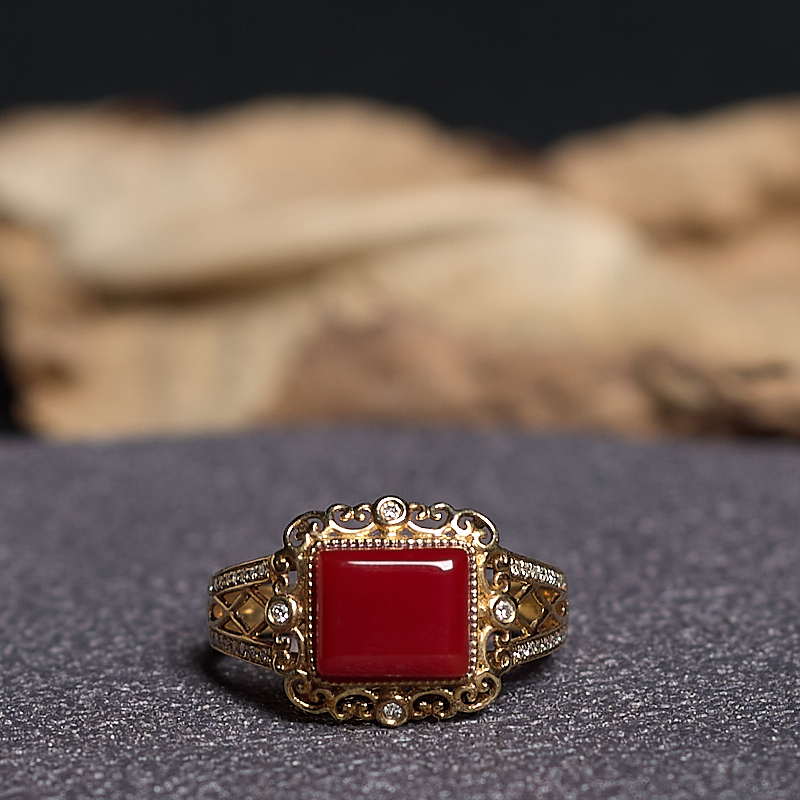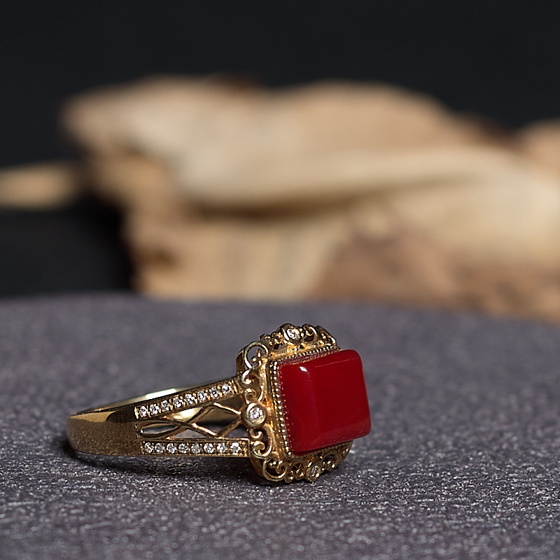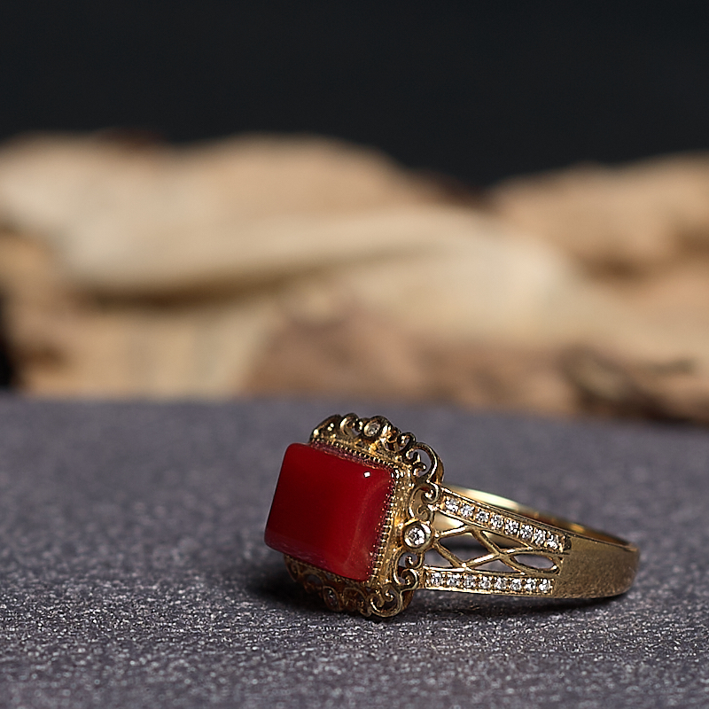 • 18K阿卡牛血红珊瑚方形戒指