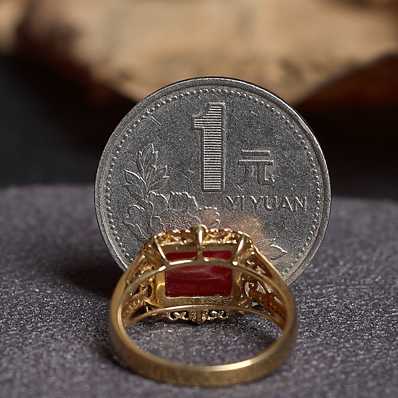 • [名  称] 18K阿卡牛血红珊瑚方形戒指