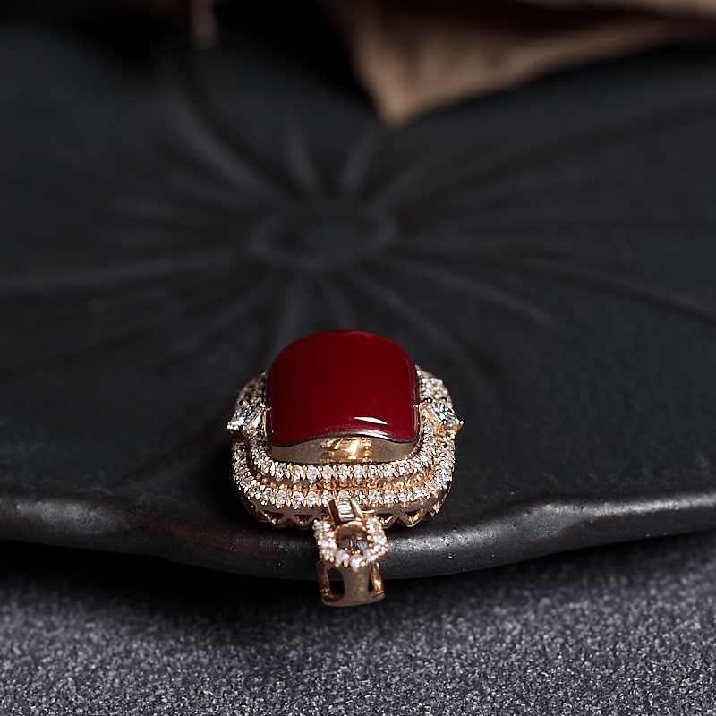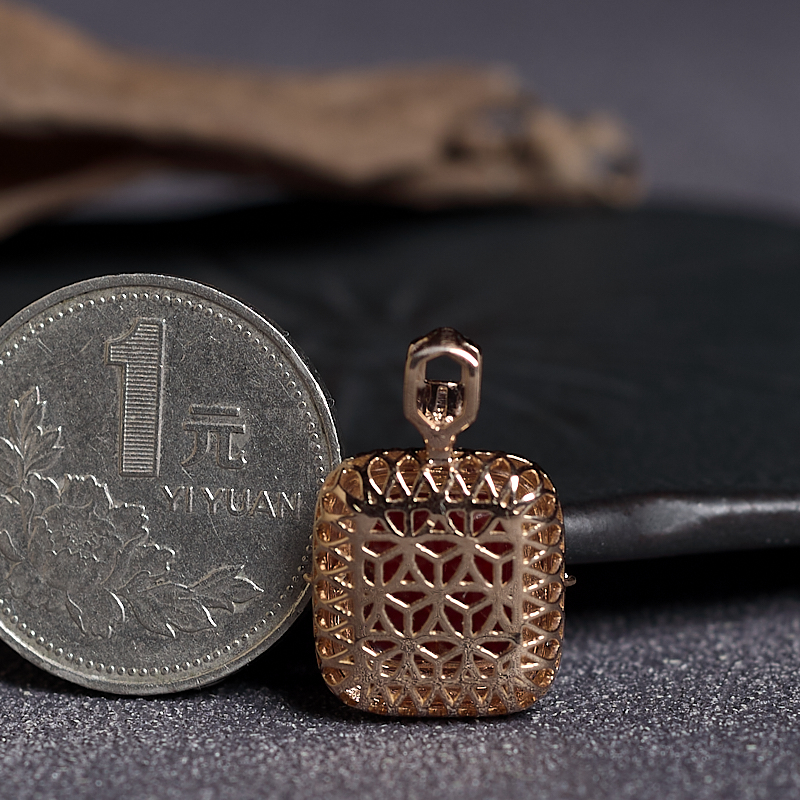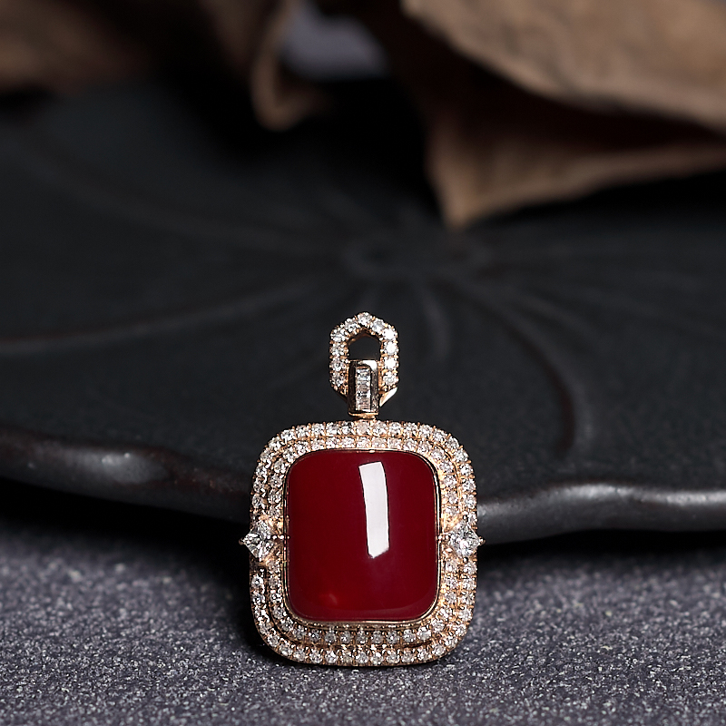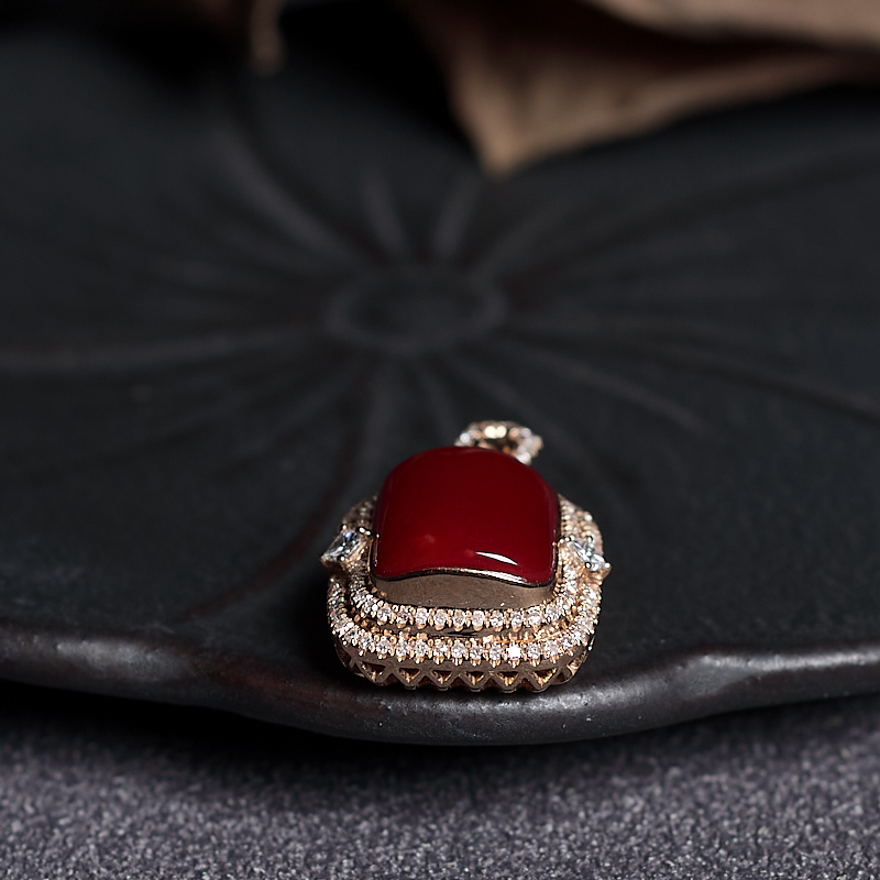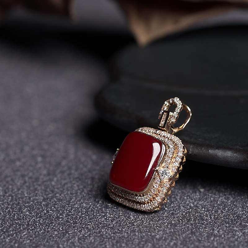 • [名  称] 18K阿卡牛血红珊瑚方形吊坠