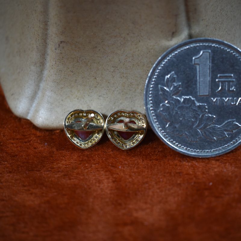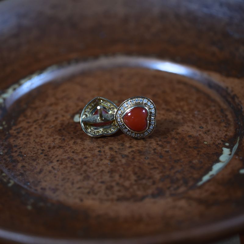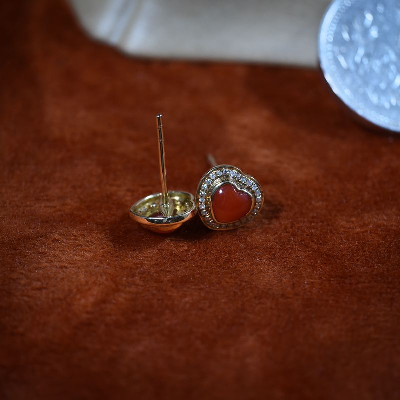 • [名  称] 18K阿卡牛血红珊瑚心形耳钉