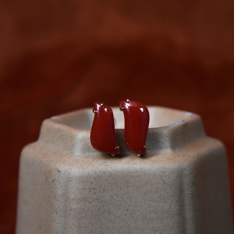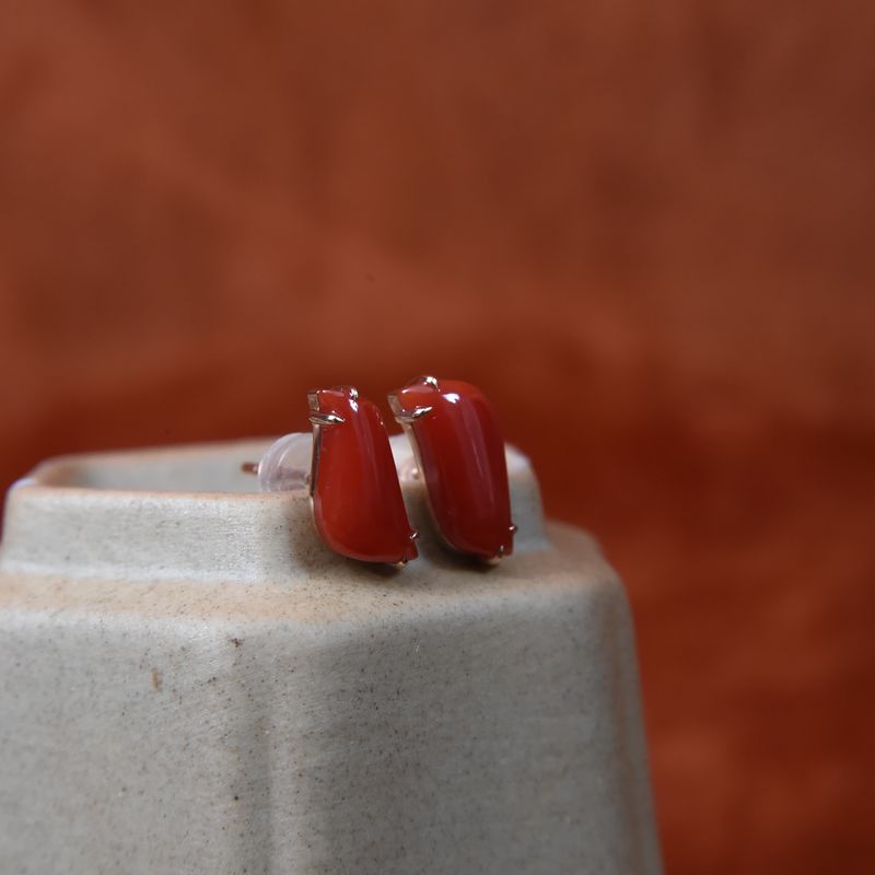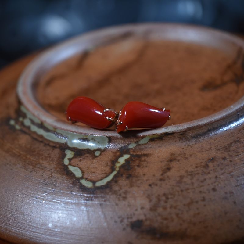 • [名  称] 18K阿卡牛血红珊瑚随形耳钉