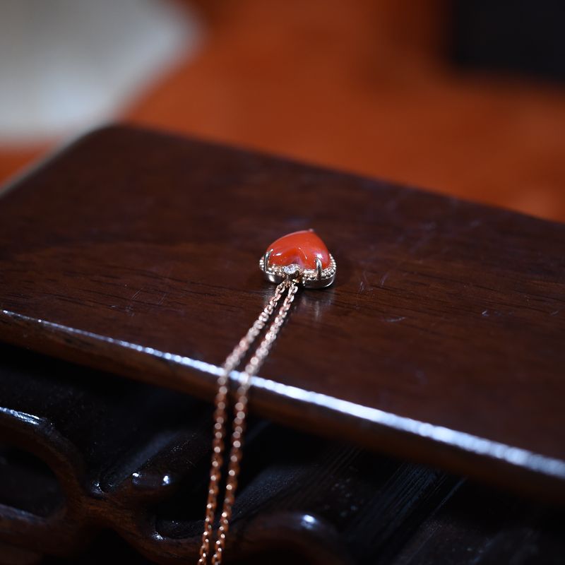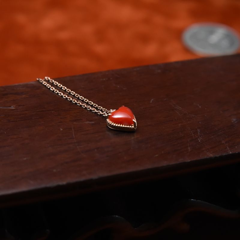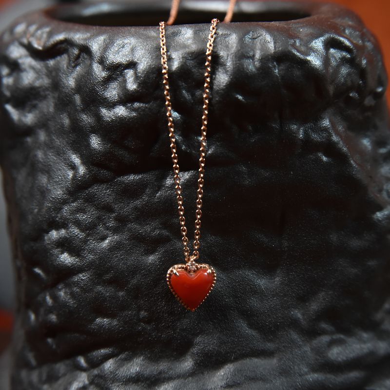 • [名  称] 18K阿卡牛血红珊瑚心形项链