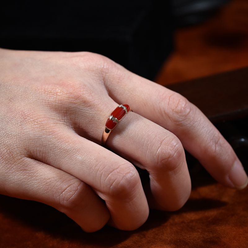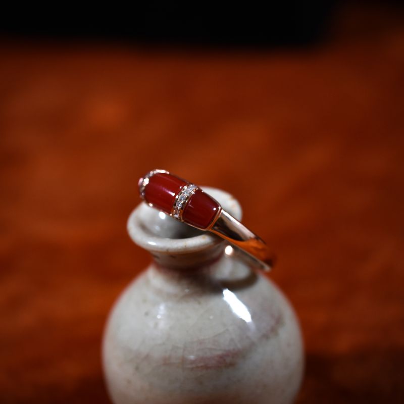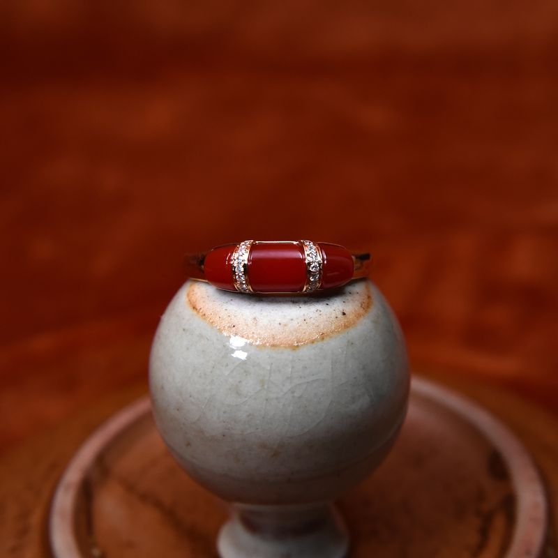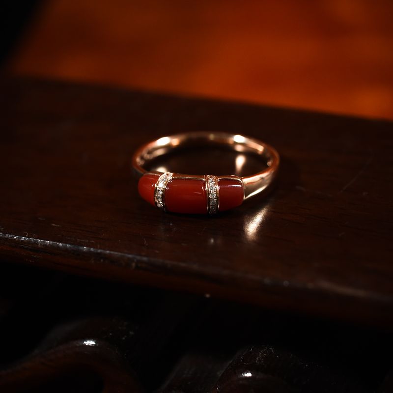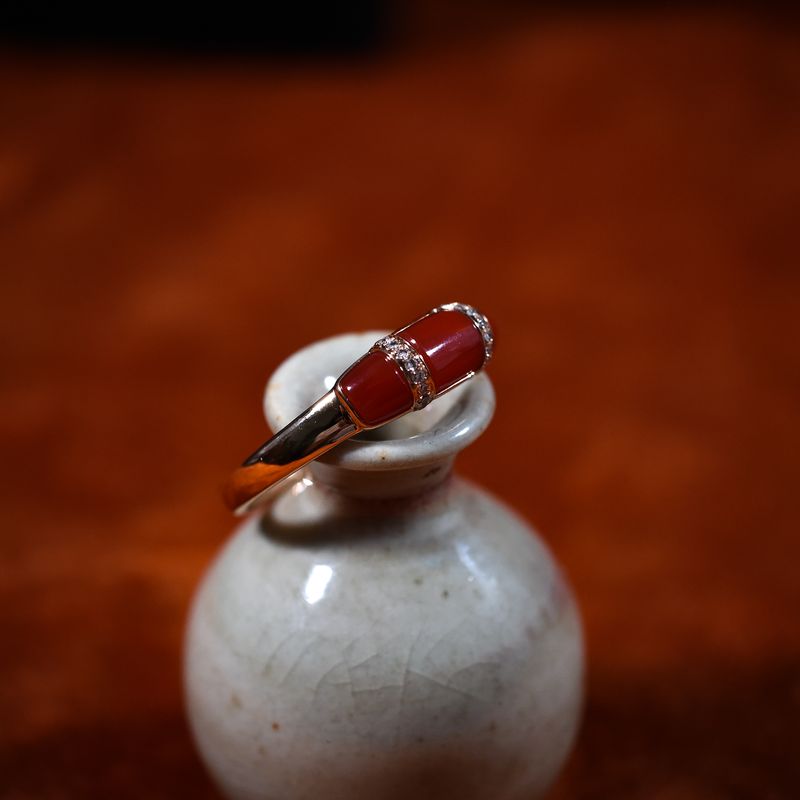 • 18K阿卡牛血红珊瑚戒指