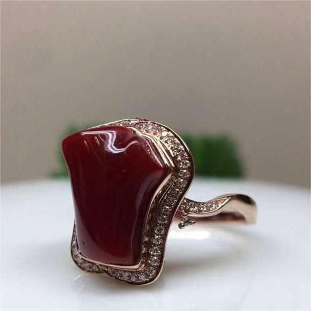 • [名  称] 18K阿卡牛血红珊瑚随形戒指