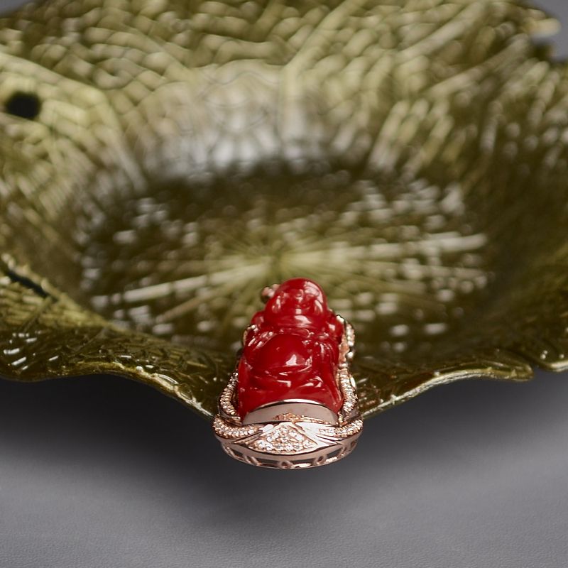 • 18K阿卡牛血红珊瑚弥勒佛吊坠