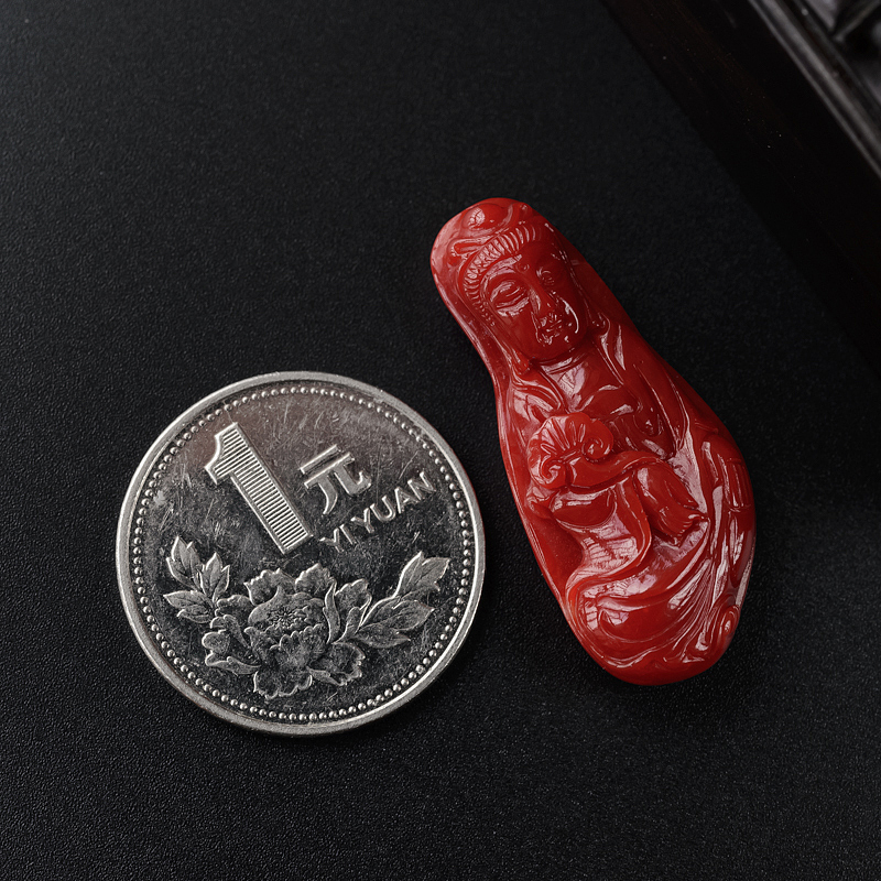 • 日本阿卡牛血红珊瑚观音吊坠-红掌柜