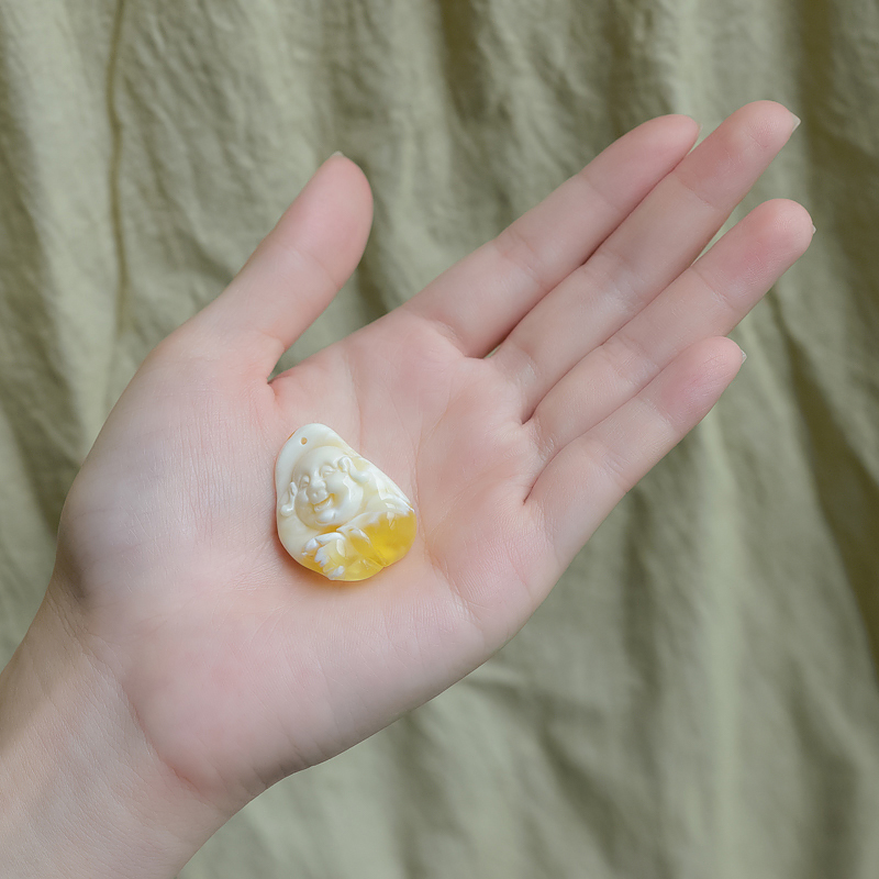 • 白花蜜蜡弥勒佛吊坠