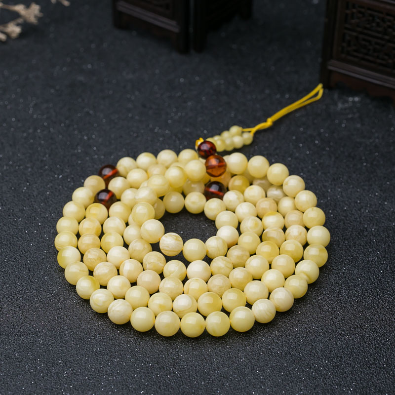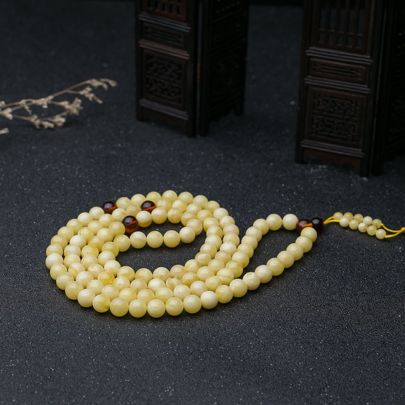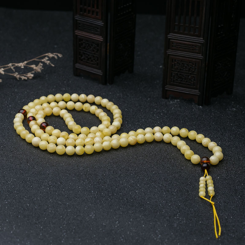 • [名  称] 8.5mm白花蜜蜡108佛珠