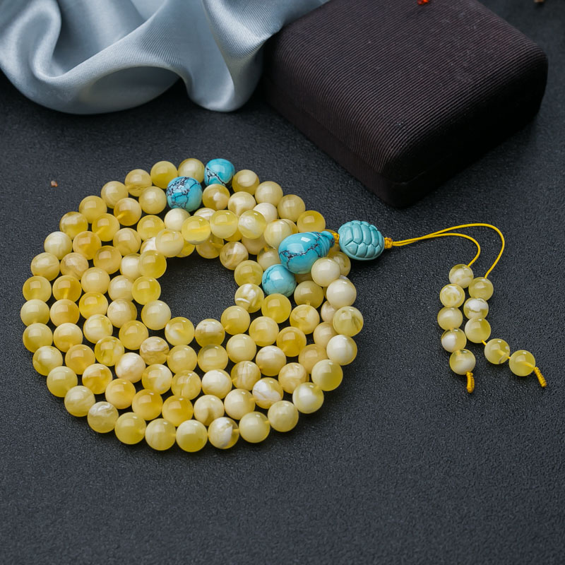 • [名  称] 8.5mm白花蜜蜡108佛珠