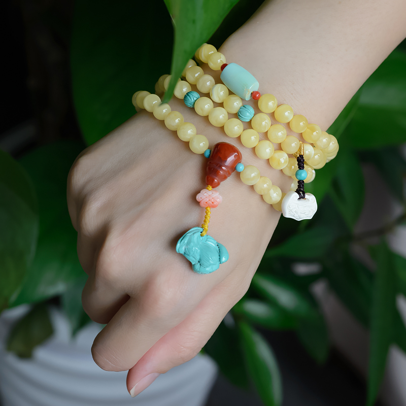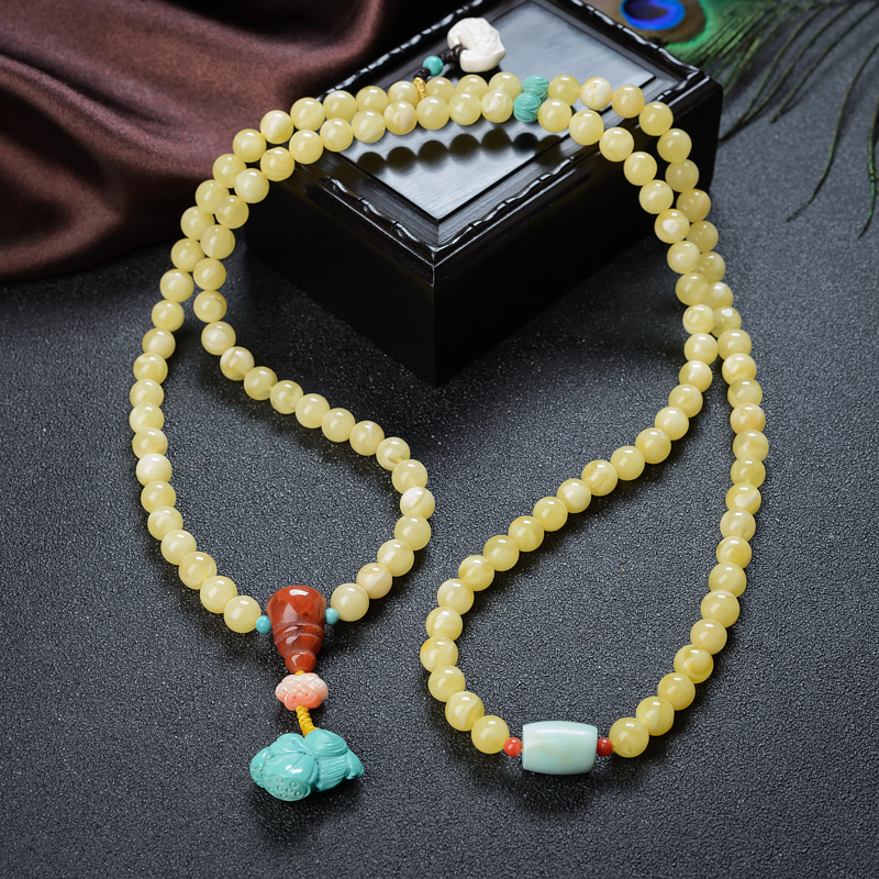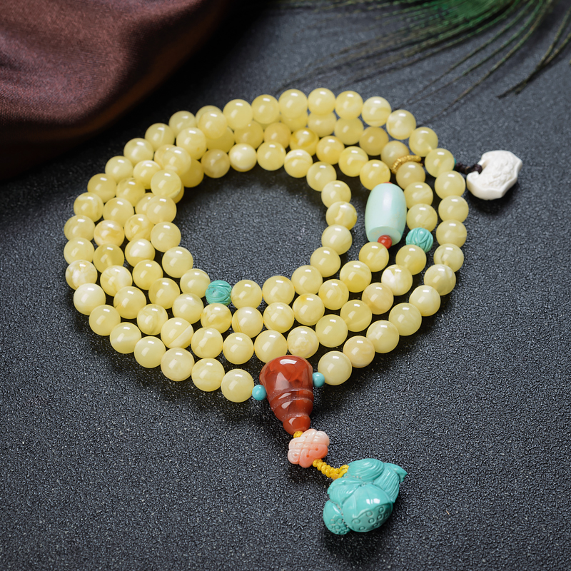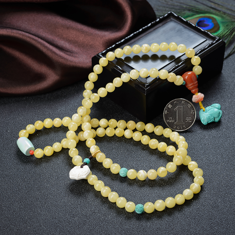 桶珠珠径9.6mm厚12.9mm,全长81cm,蜜蜡珠数108颗