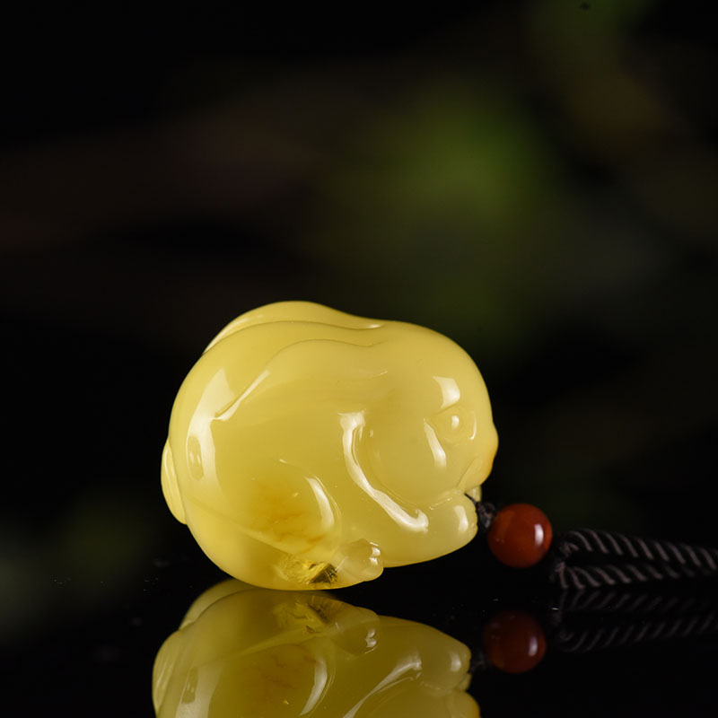 • 黄白花蜜蜜蜡卯兔吊坠
