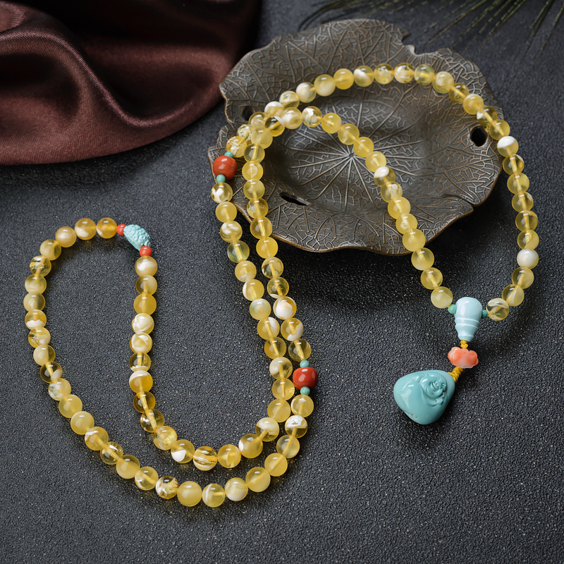 配饰:绿松石、珊瑚、南红 含天然矿物包体