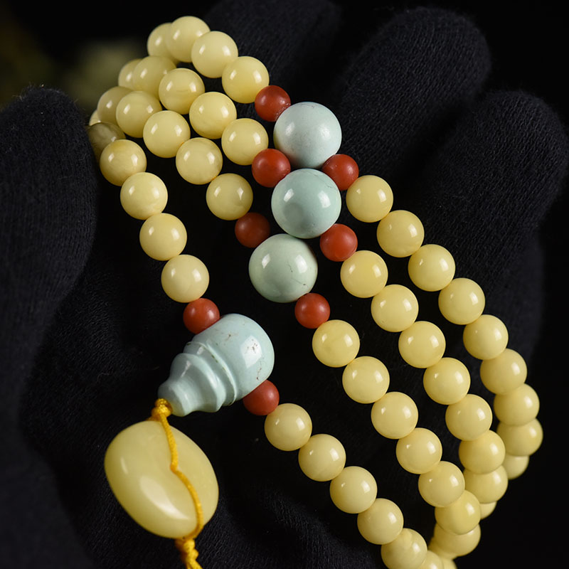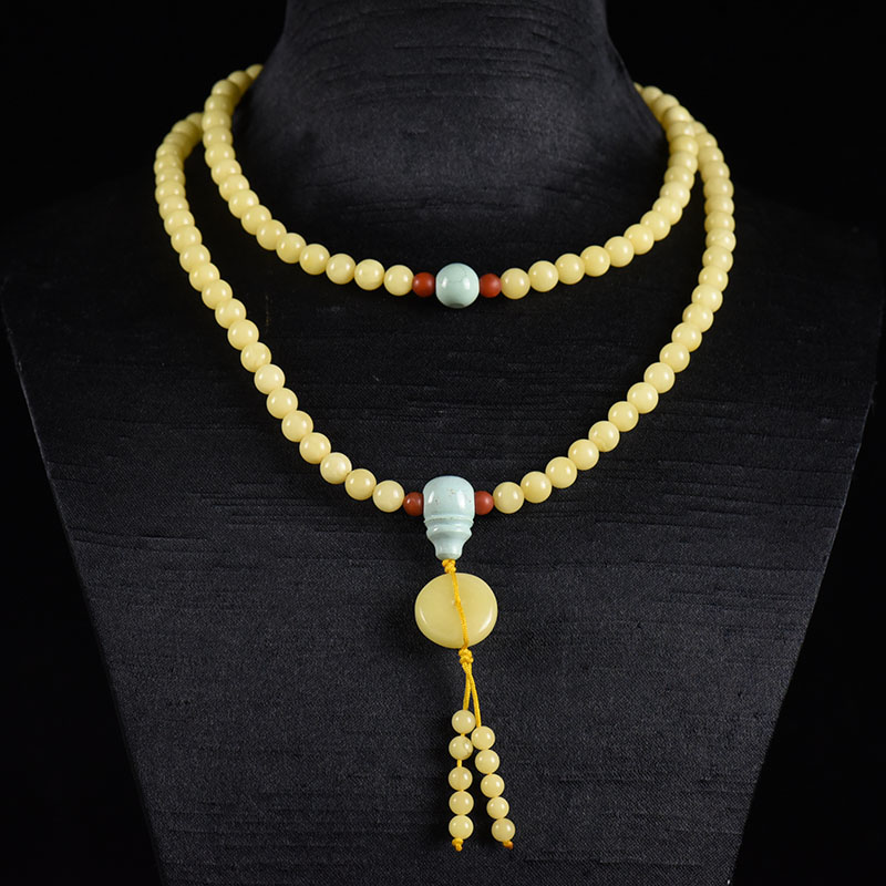 • 6mm白花蜜蜜蜡平安扣108佛珠