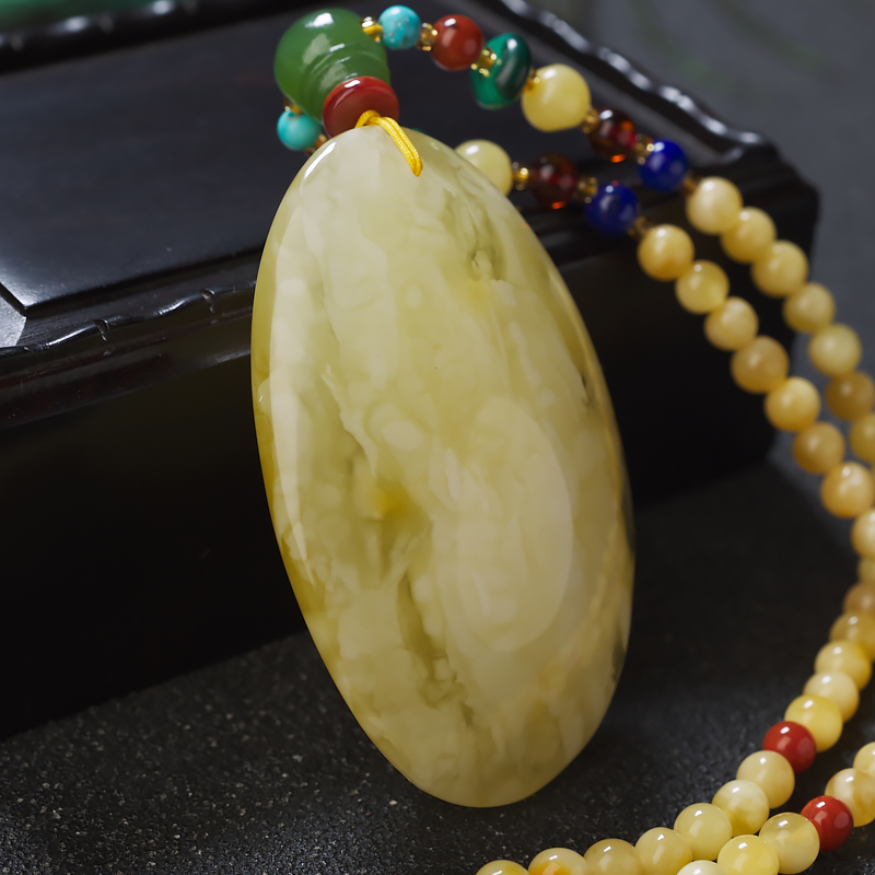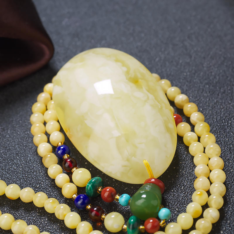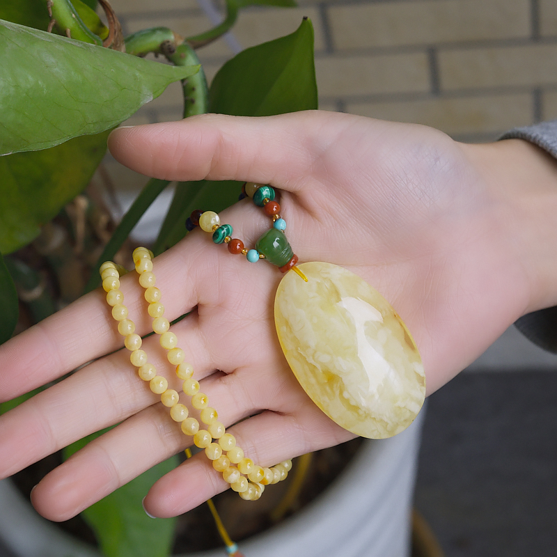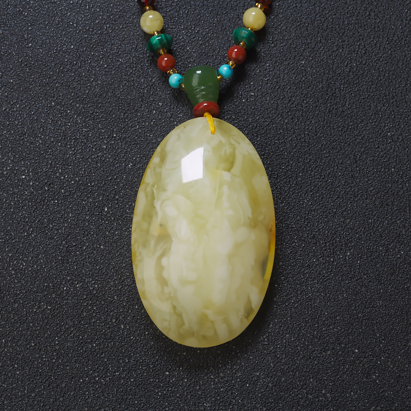 • [产品描述] 配饰:蜜蜡、南红、碧玉、绿松石、孔雀石