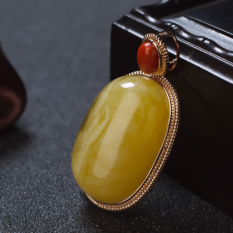 • 18K白花蜜蜡吊坠