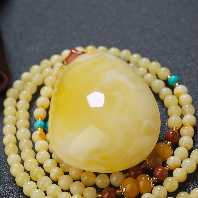 蜜蜡珠径4.5mm,配链全长63cm,蜜蜡珠数122颗