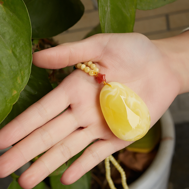 • 白花蜜蜡水滴吊坠