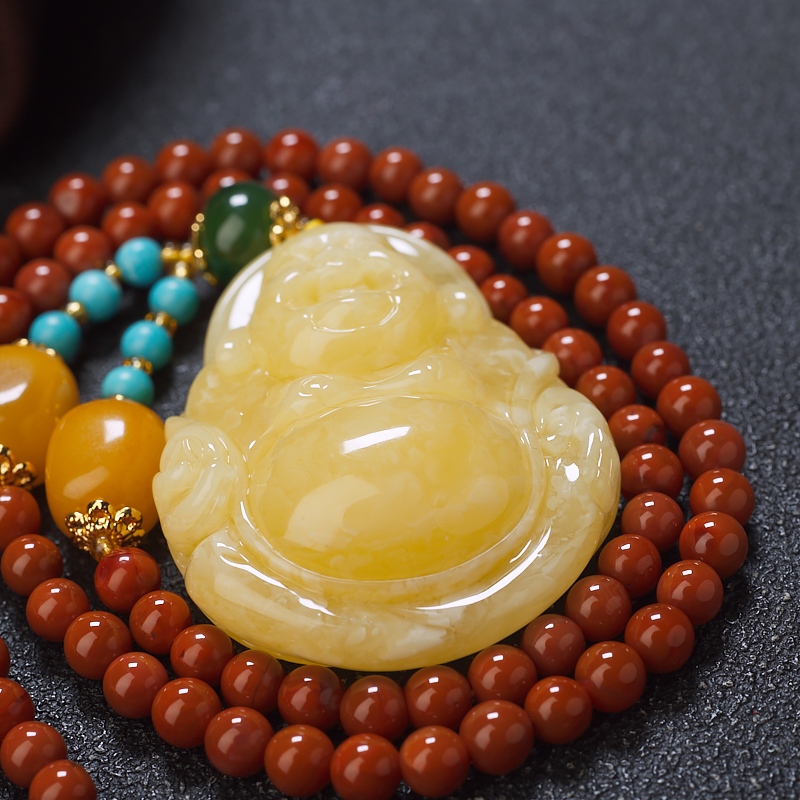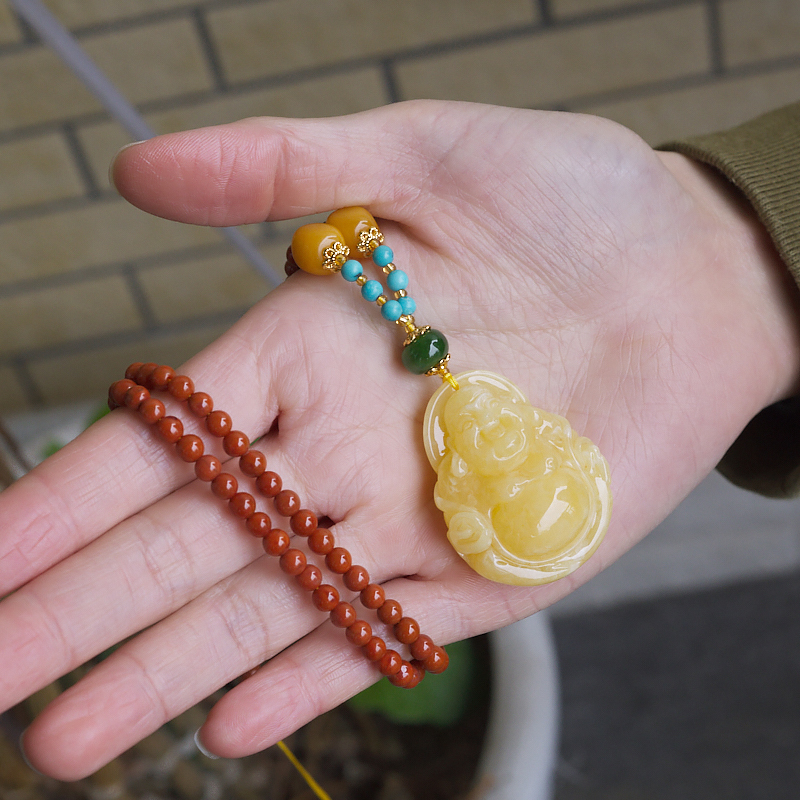 • [产品描述] 配饰:南红、碧玉、绿松石、蜜蜡、血珀