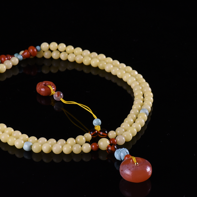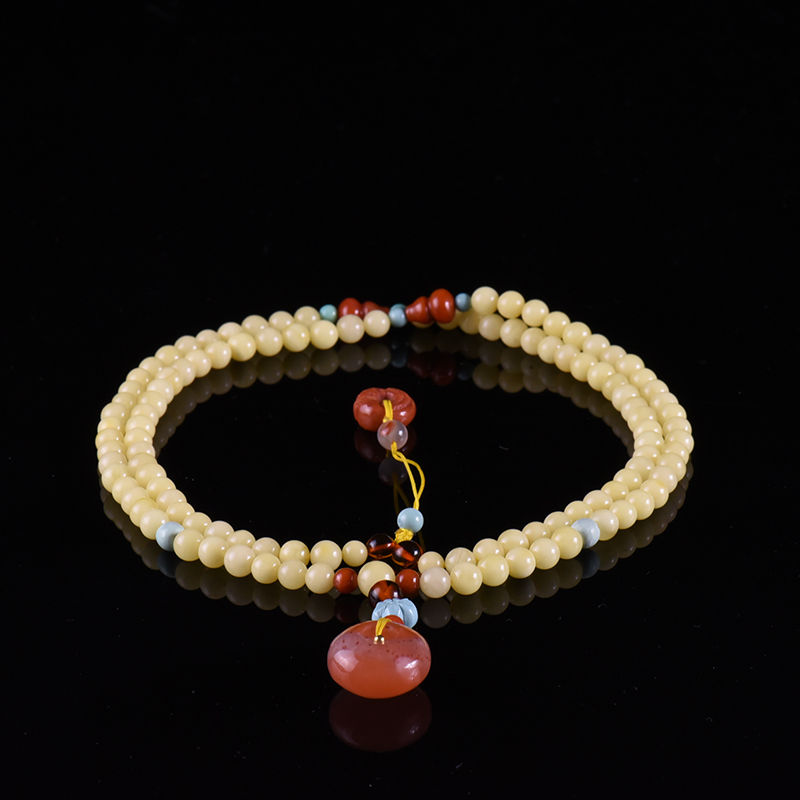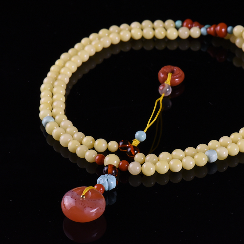 • 6mm白花蜜蜜蜡平安扣108佛珠