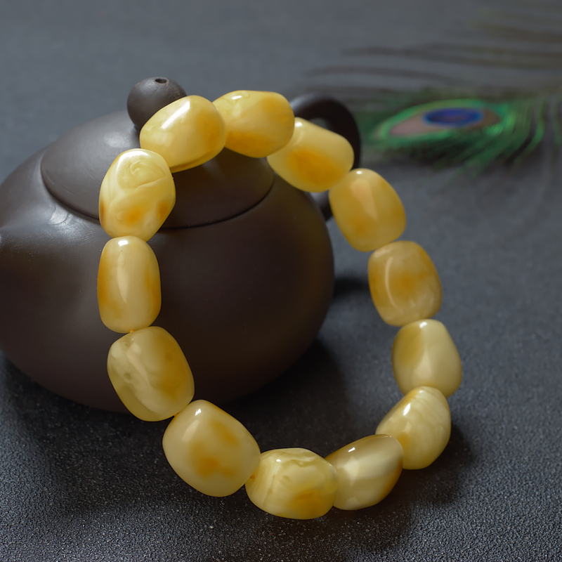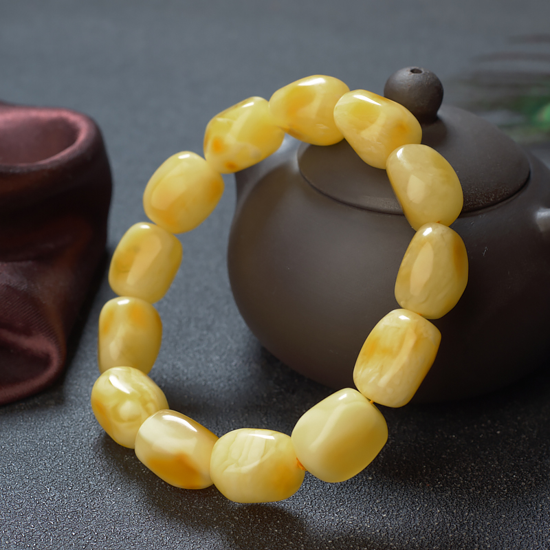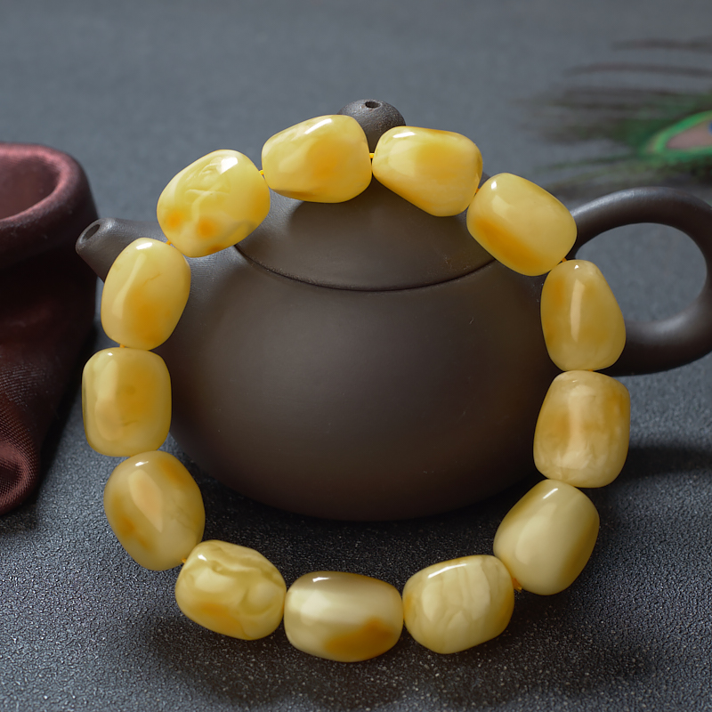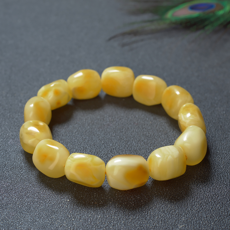 • [名  称] 带皮白花蜜蜡随形单圈手串