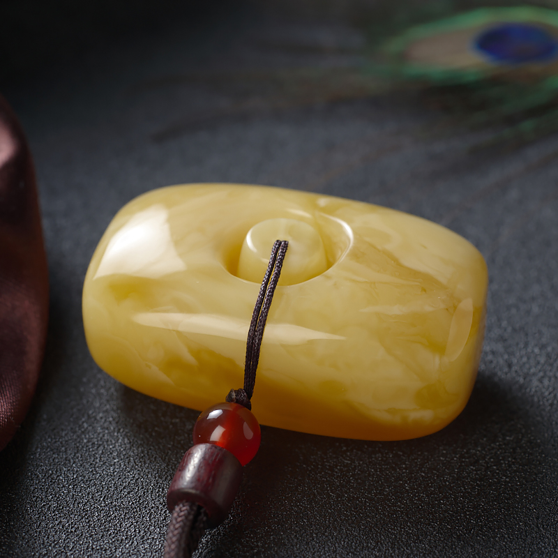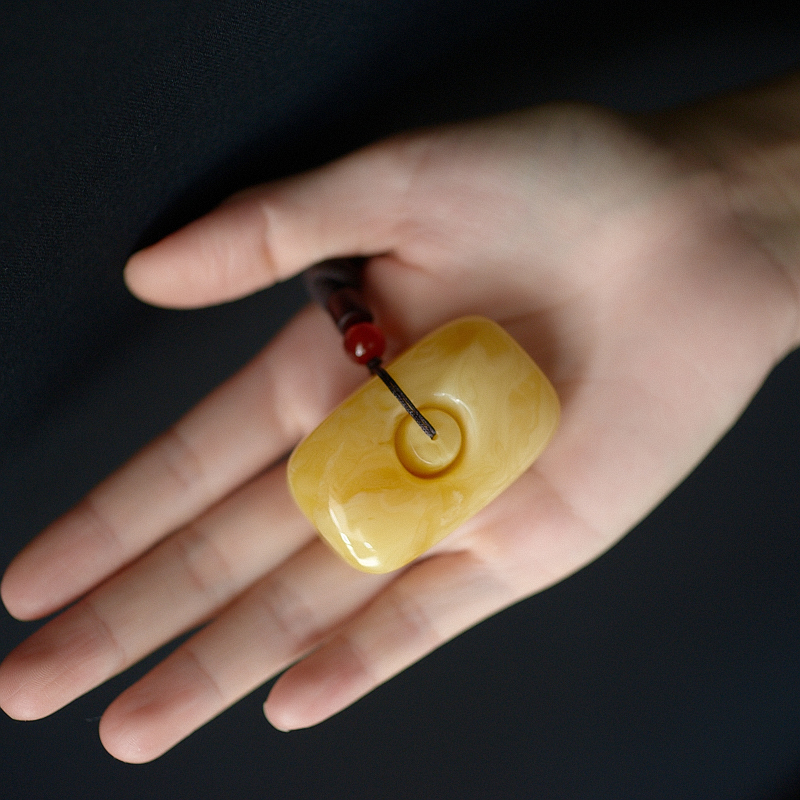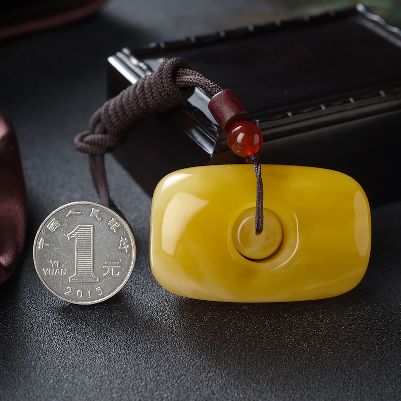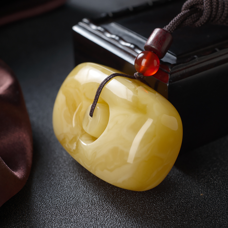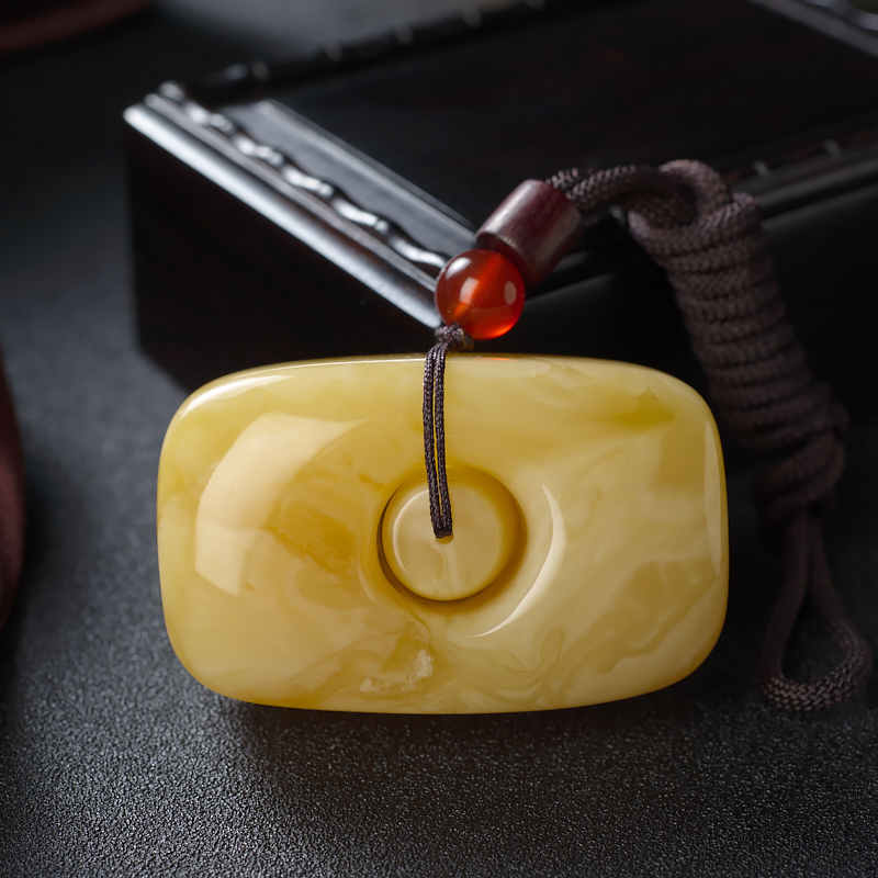 • 白花蜜蜡方形扣吊坠