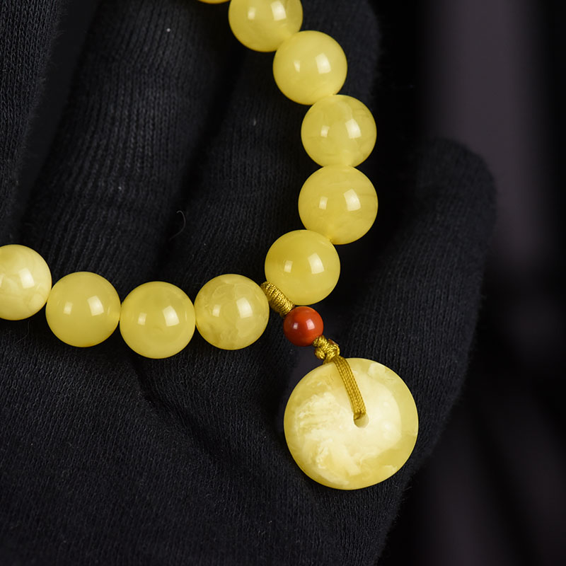 • [名  称] 10mm白花蜜蜜蜡平安扣单圈手串