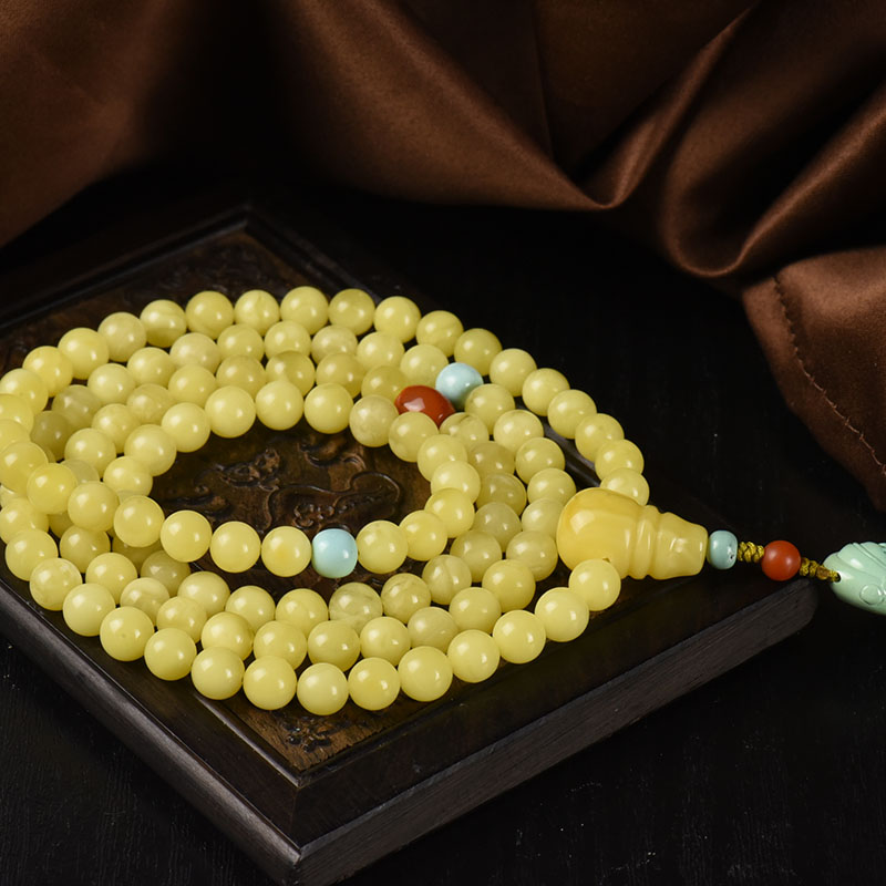 • 6.5mm白花蜜蜜蜡财神108佛珠