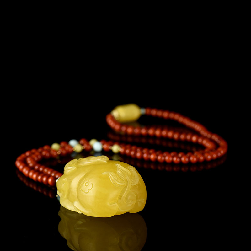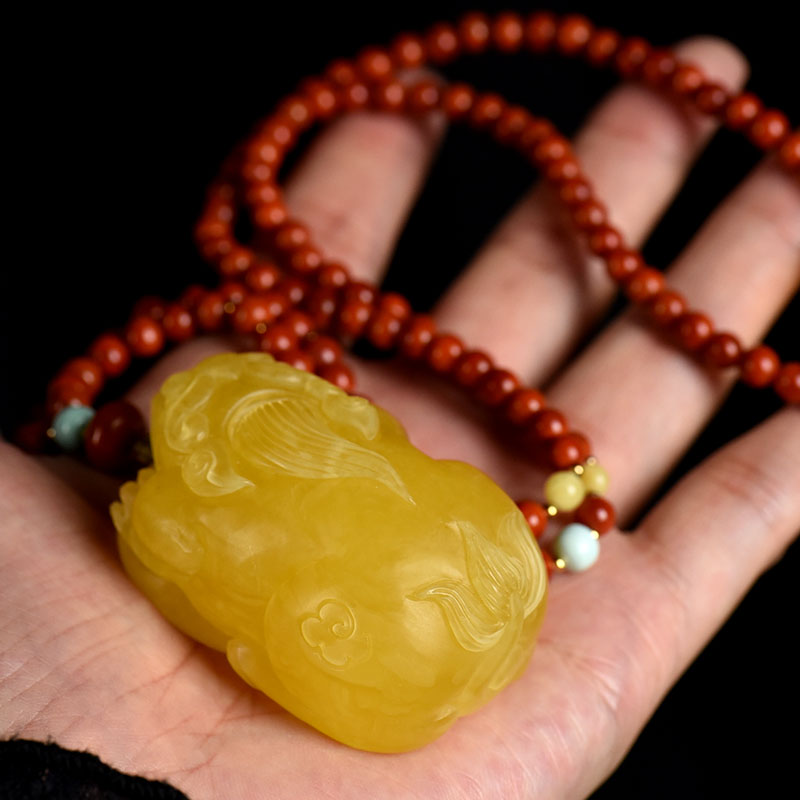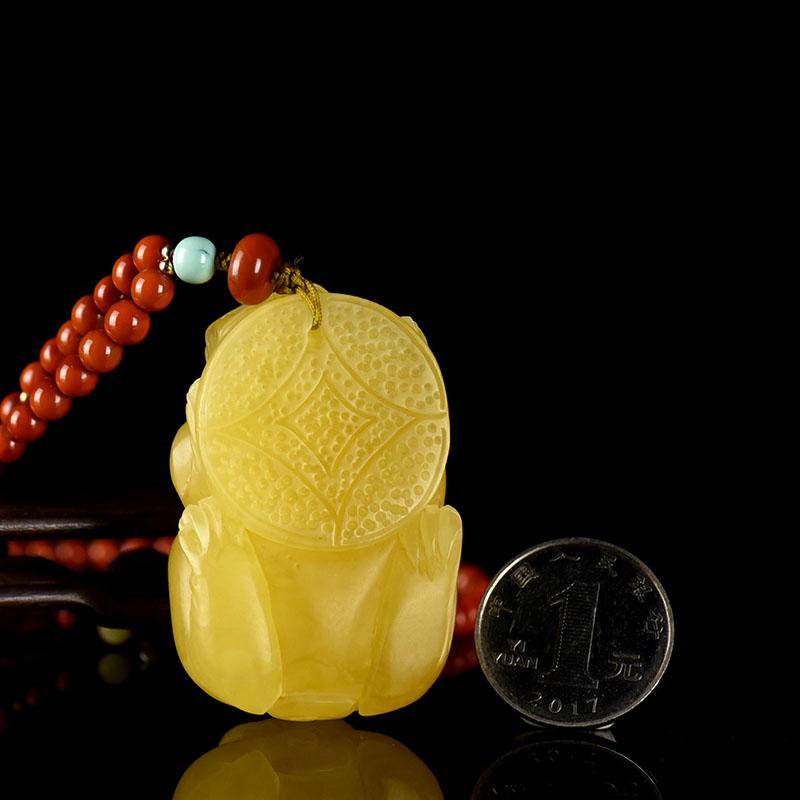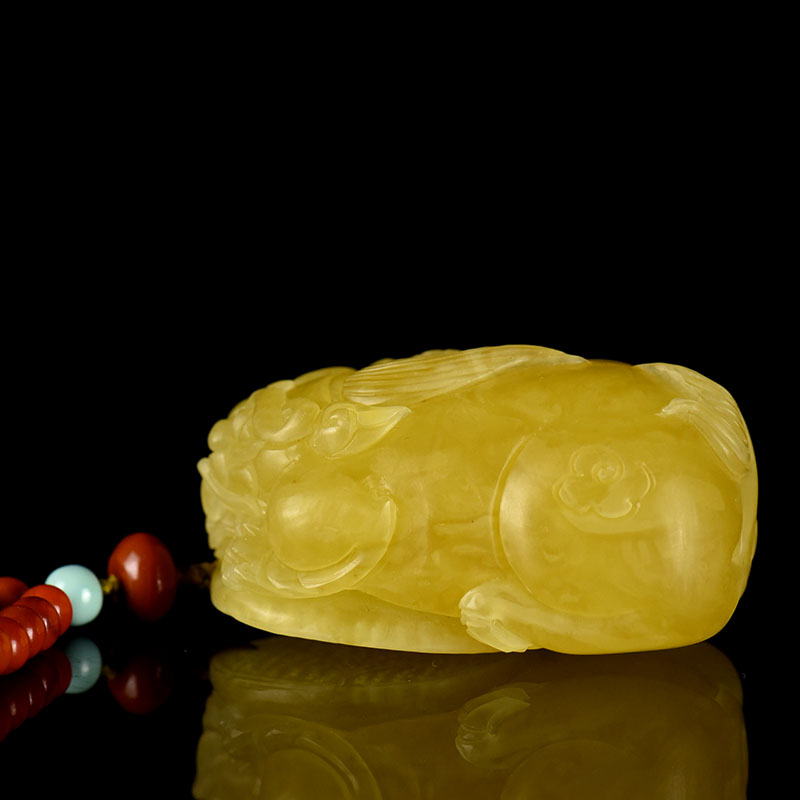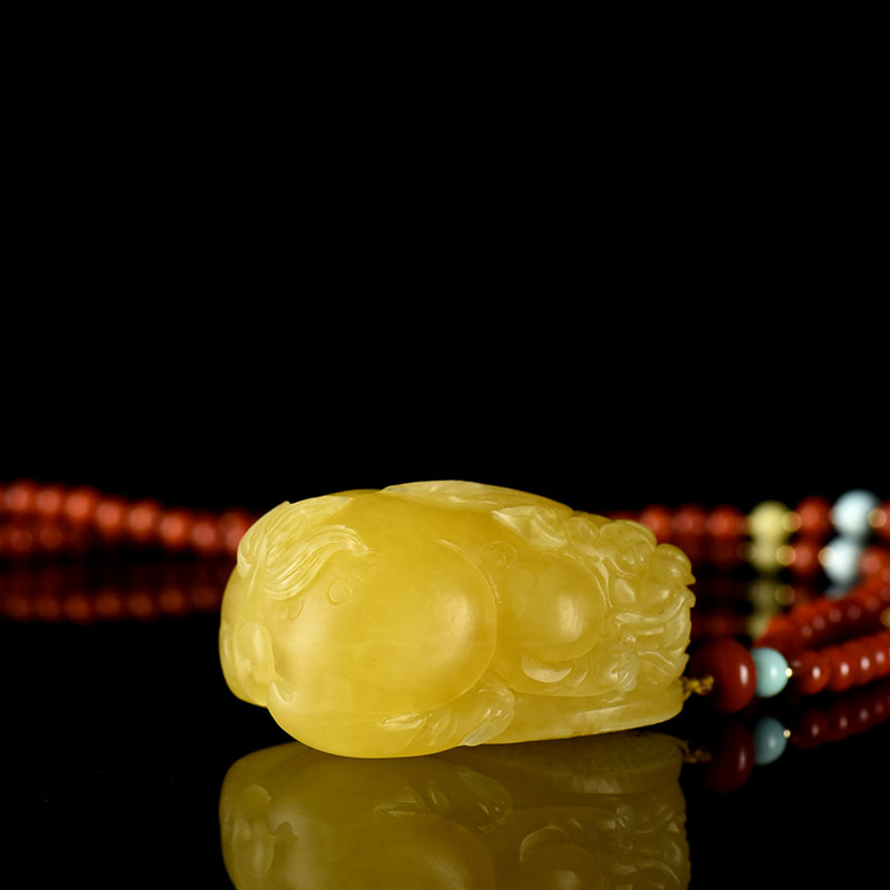 • [名  称] 白花蜜鸡油黄蜜蜡貔貅吊坠