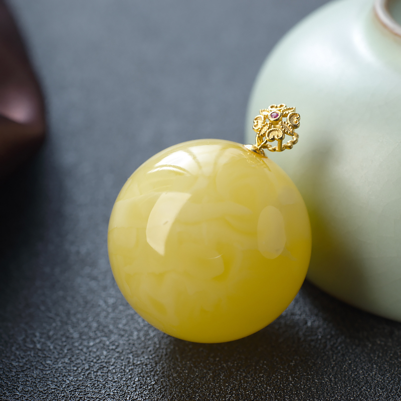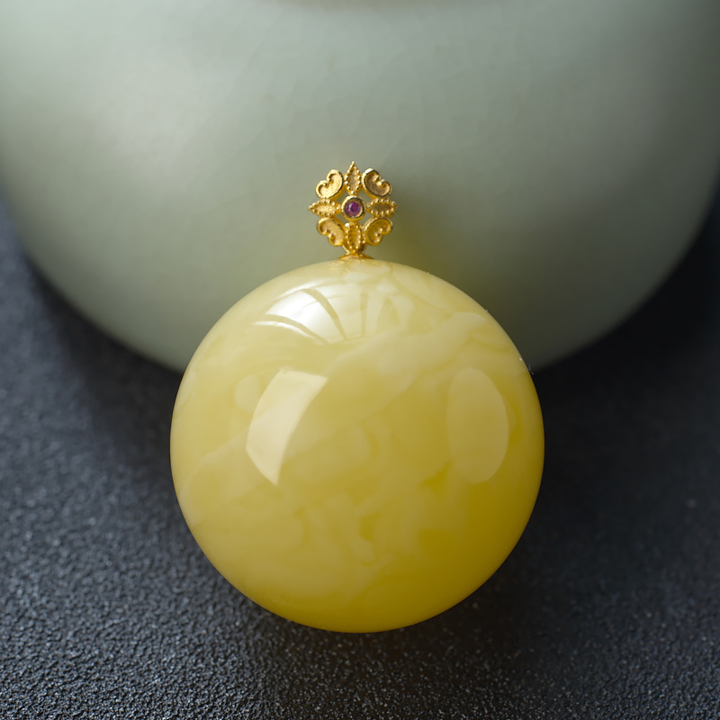 • [名  称] 18K白花蜜蜡圆珠吊坠