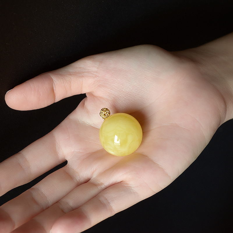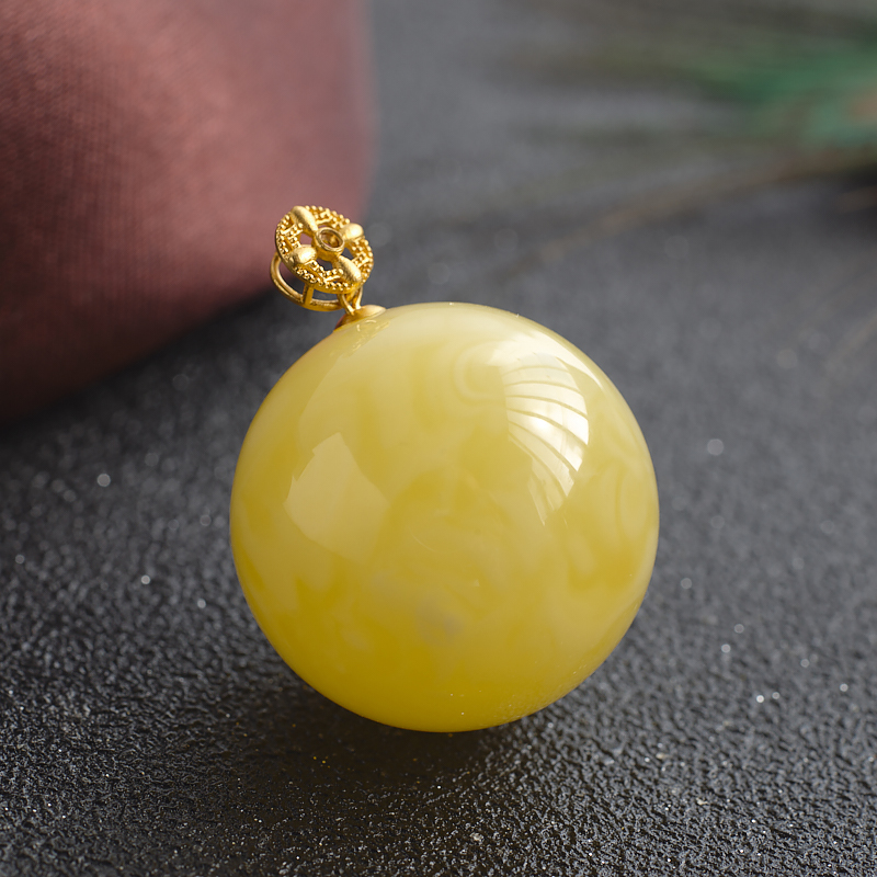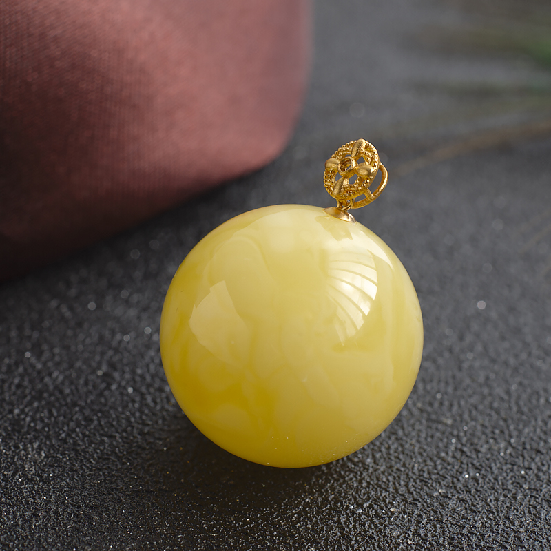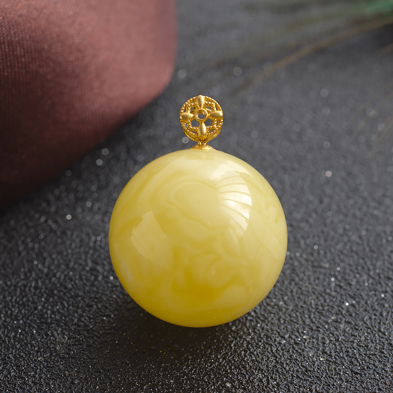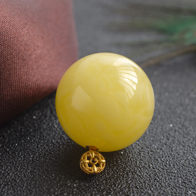 • [名  称] 18K白花蜜蜡圆珠吊坠