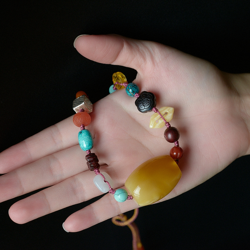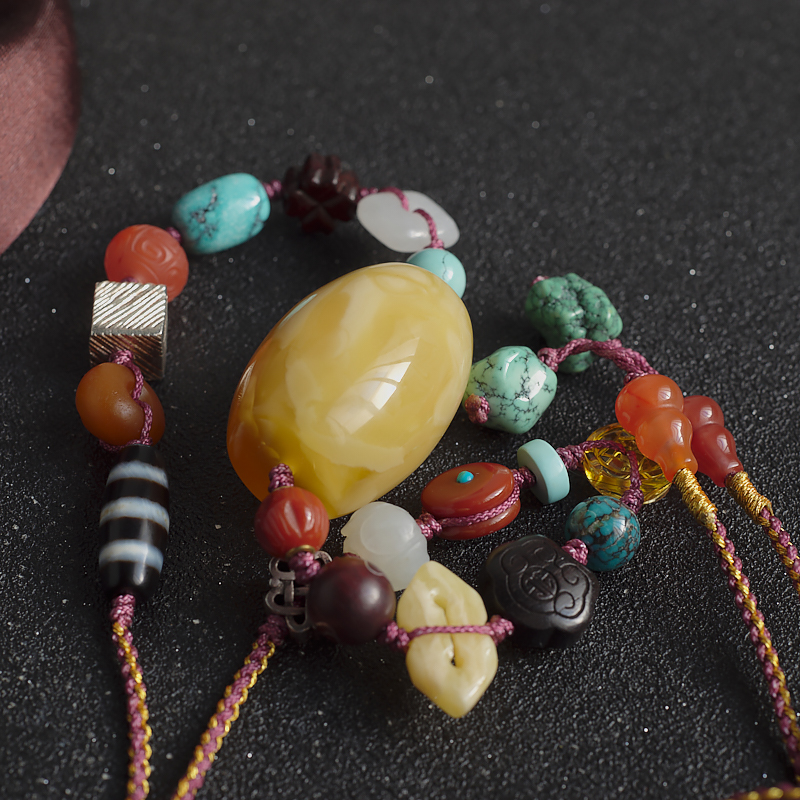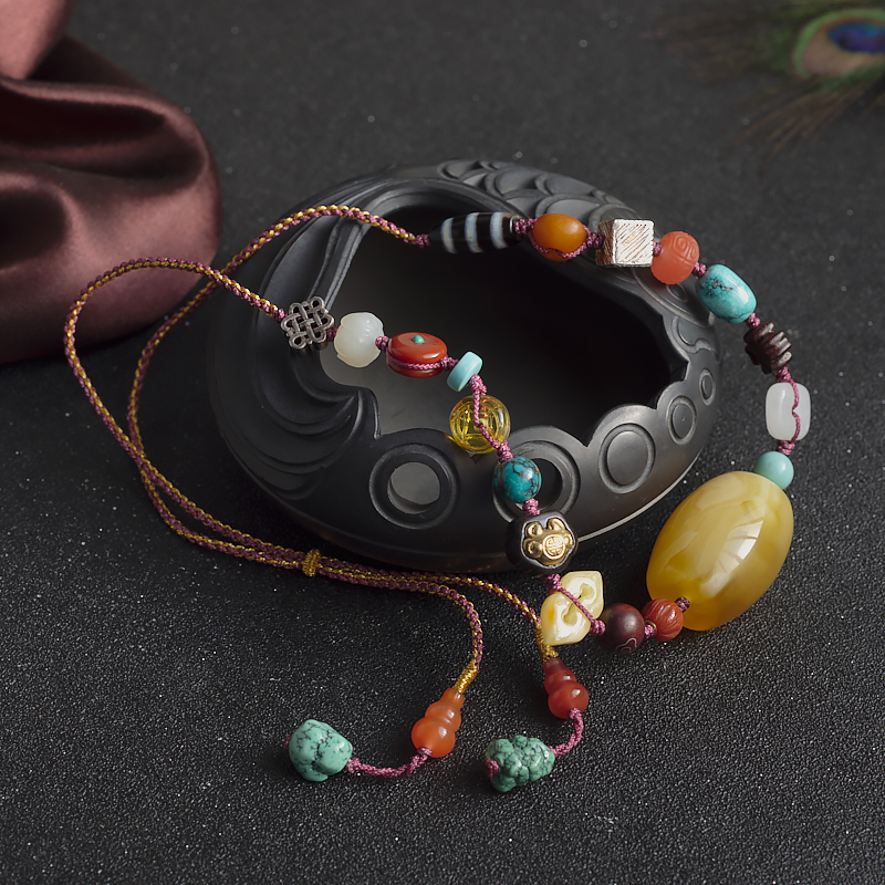 • [产品描述] 配饰:南红(银镶)、绿松石、和田玉、蜜蜡、金珀、