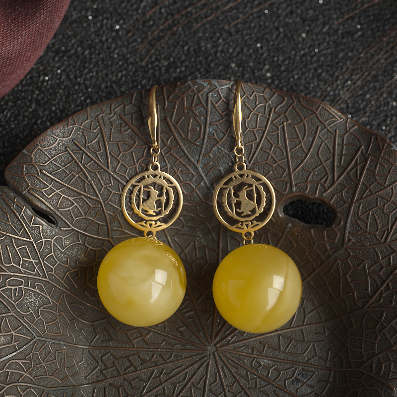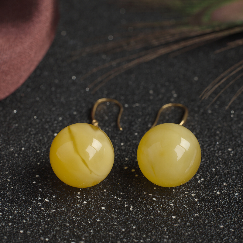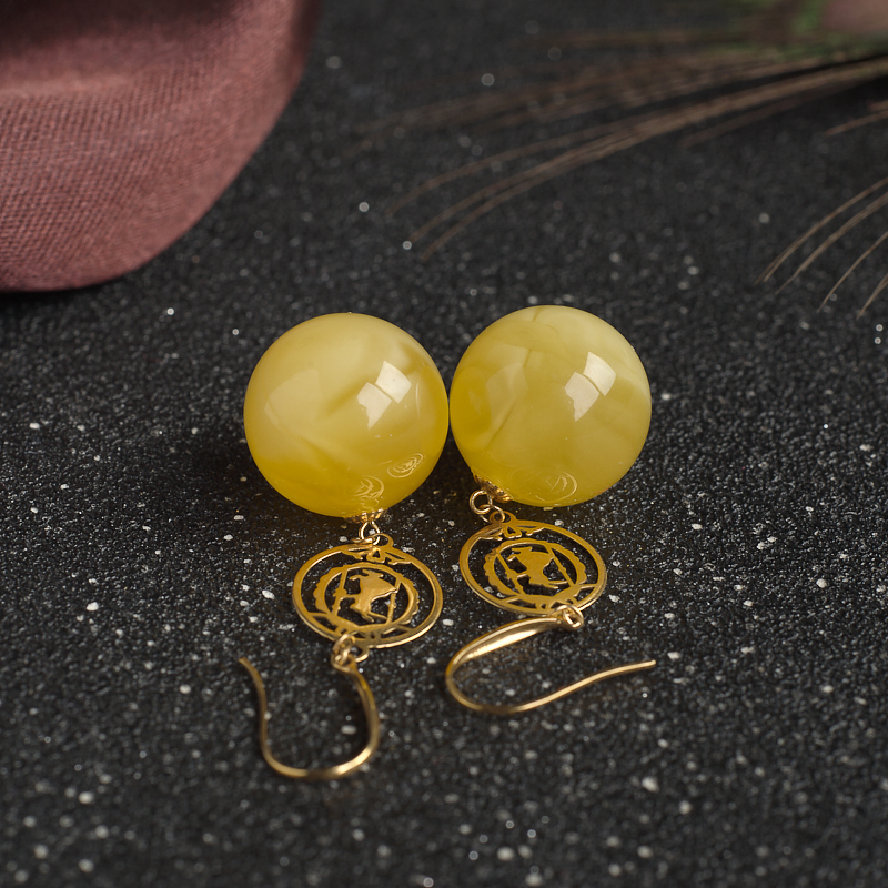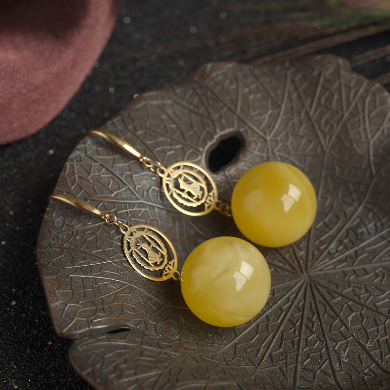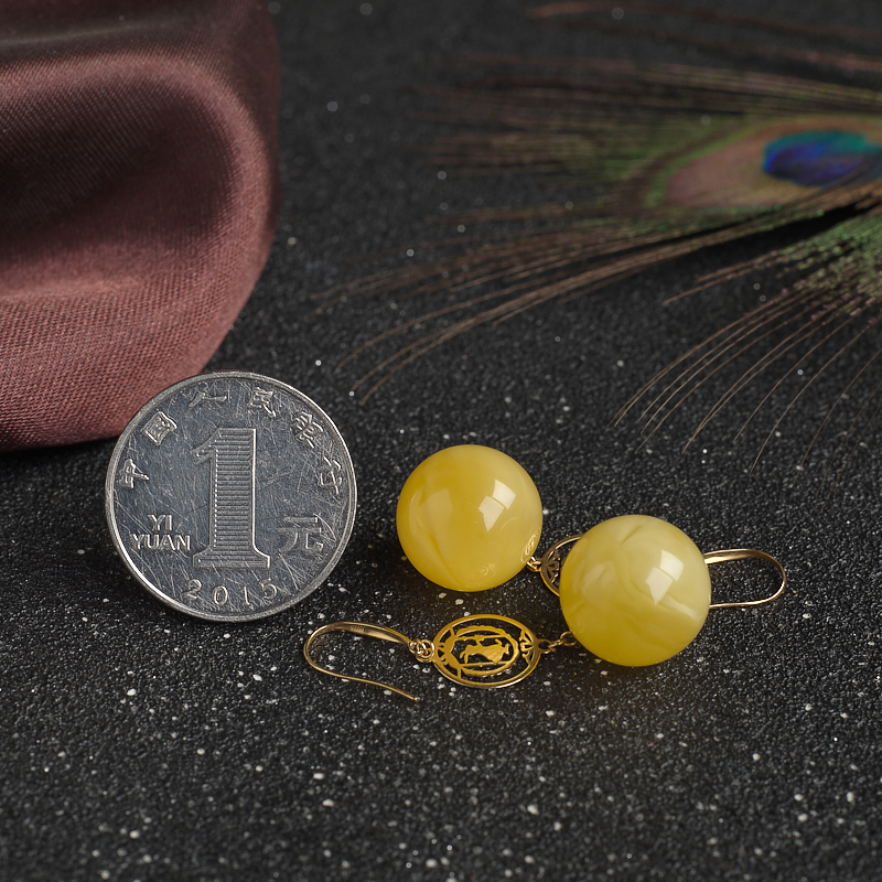 • [名  称] 18K白花蜜蜡圆珠耳环