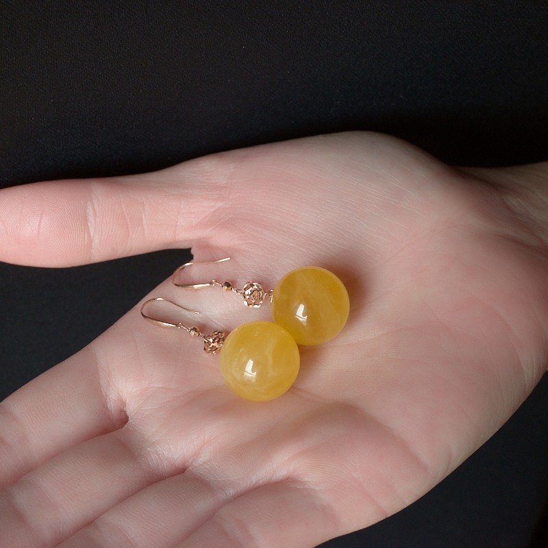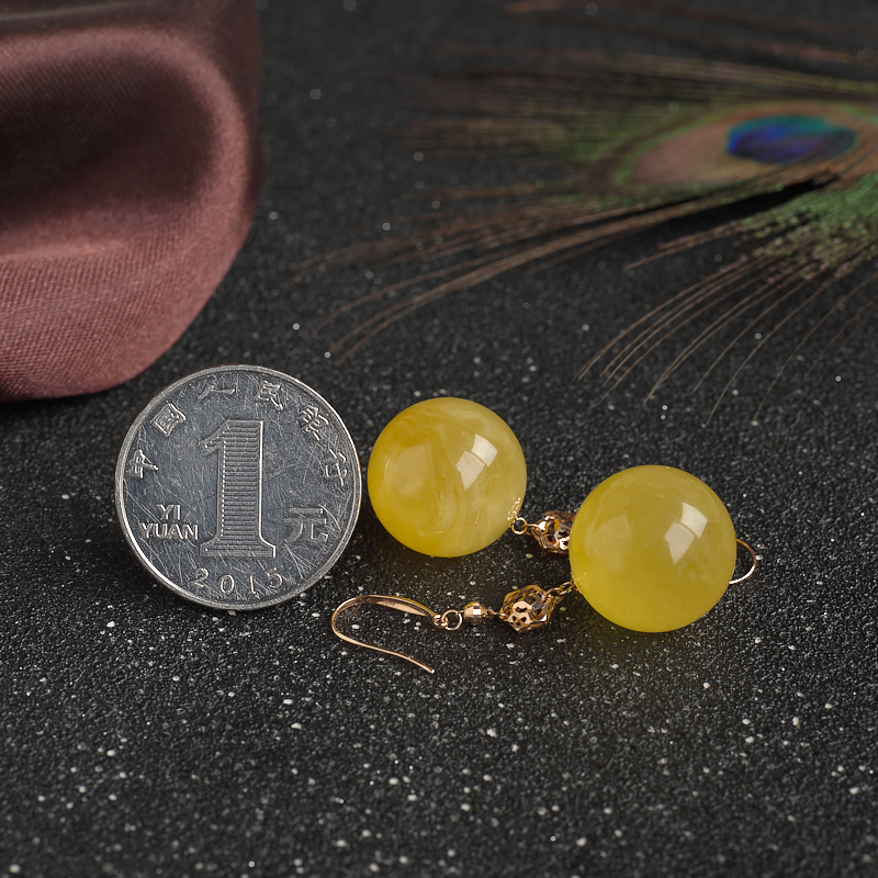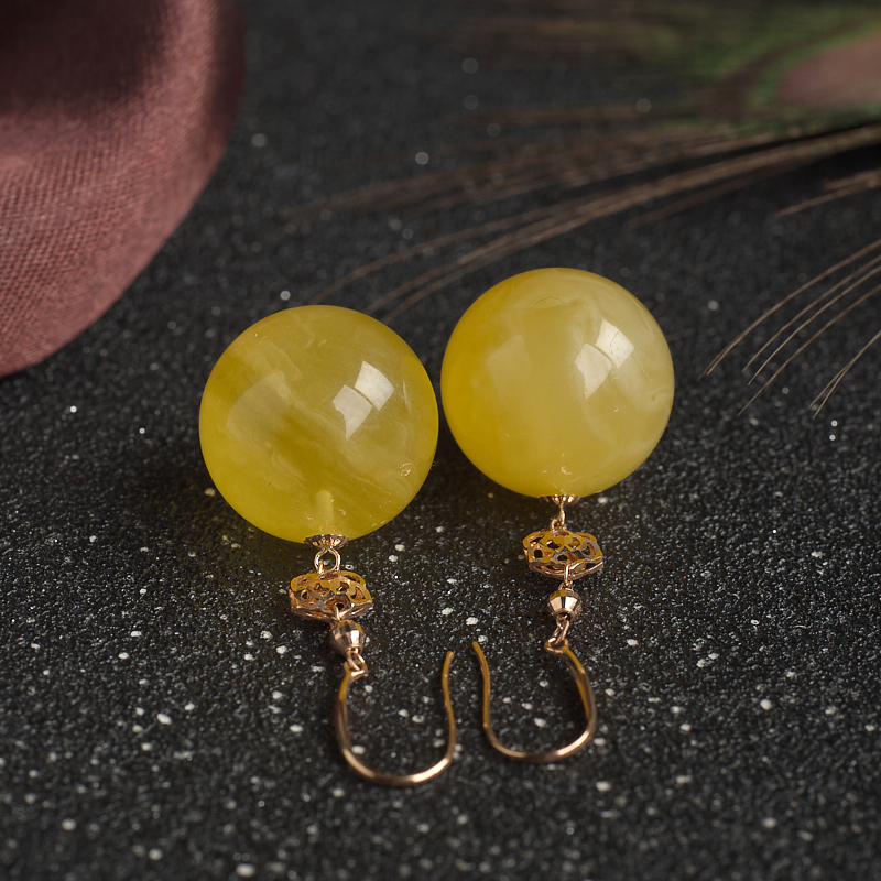• [名  称] 18K白花蜜蜡圆珠耳环
