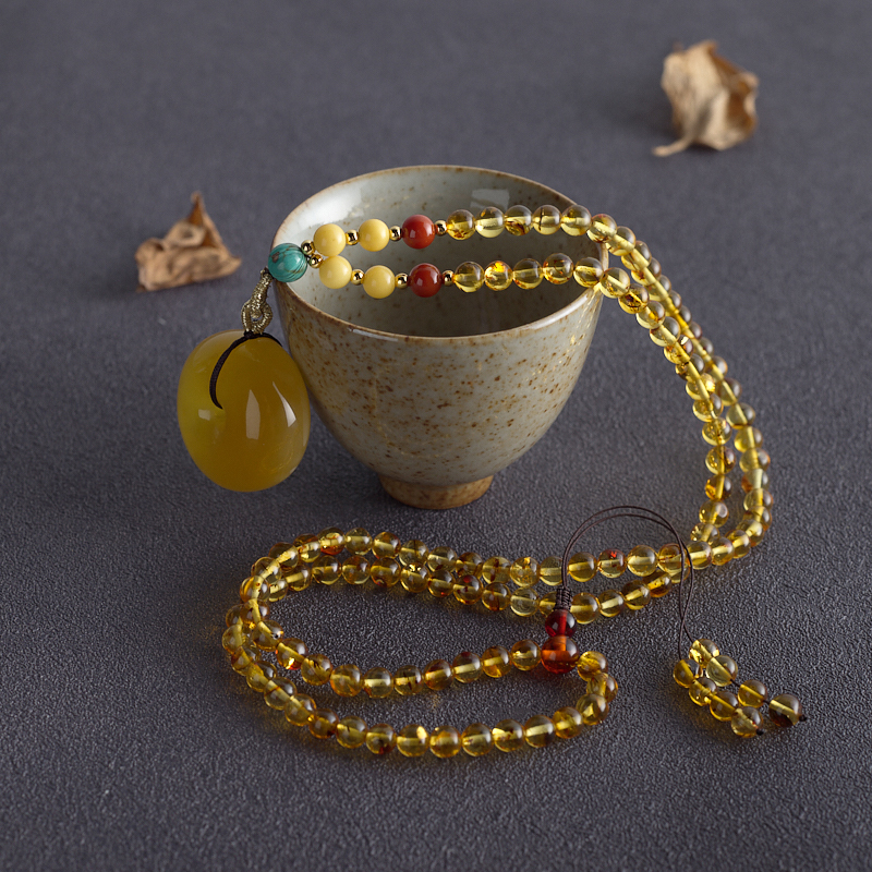 • [产品描述] 配饰:花珀、绿松石、蜜蜡、南红、血珀、银饰