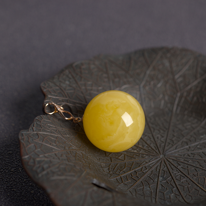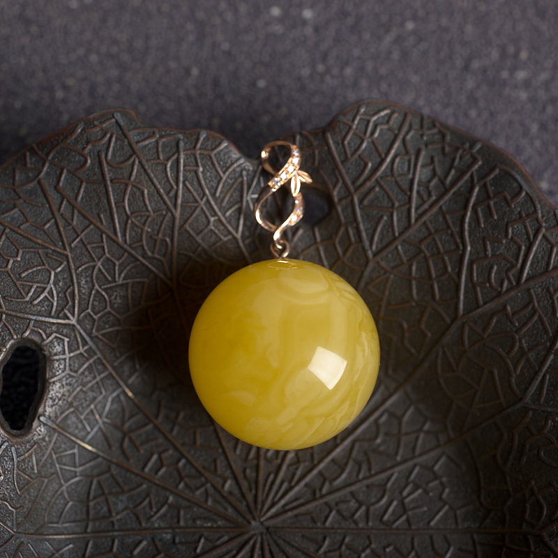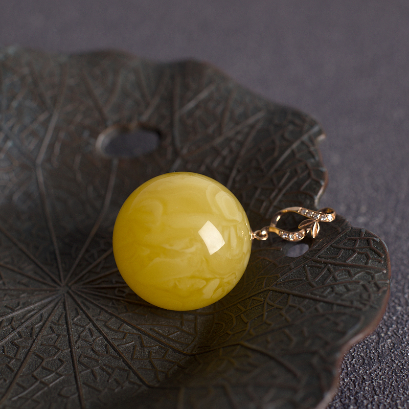 • [名  称] 18K白花蜜蜡圆珠吊坠