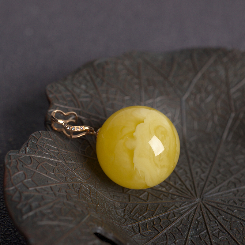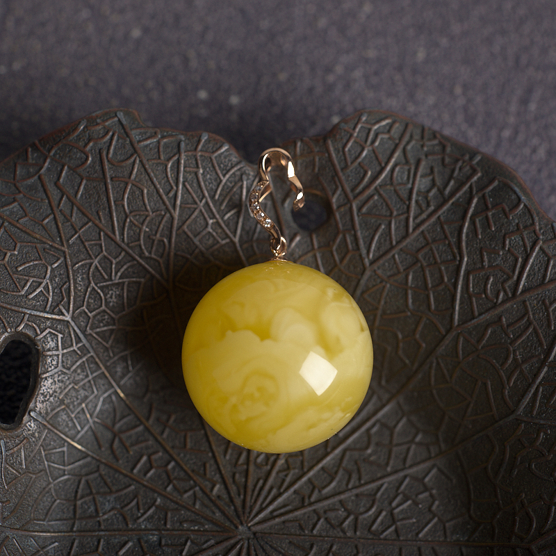 • [名  称] 18K白花蜜蜡圆珠吊坠