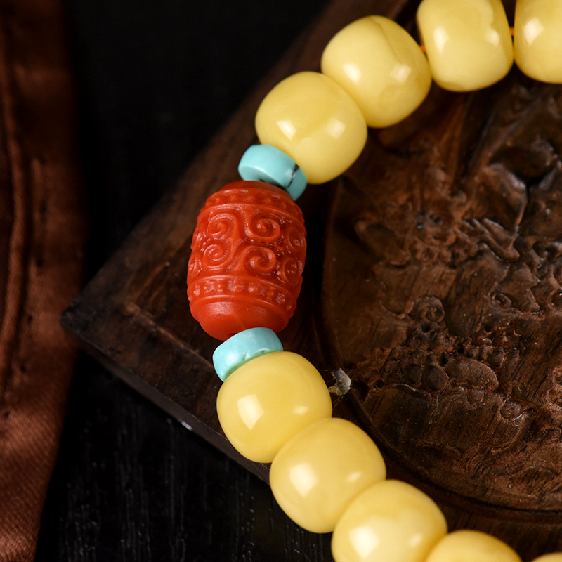 • [名  称] 白花蜜蜜蜡老形珠单圈手串