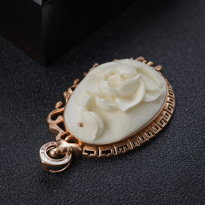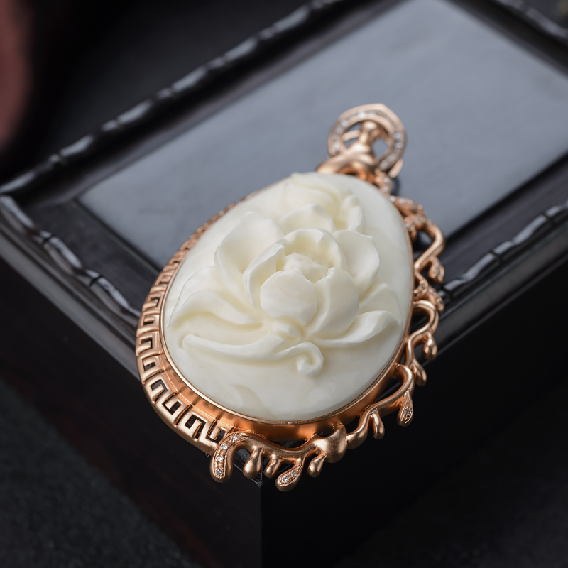 • [名  称] 18K象牙白白蜜莲花吊坠