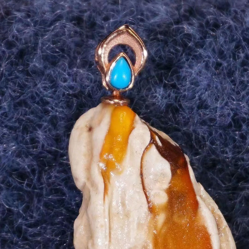 • [名  称] 18K带皮白蜡蜜蜡吊坠