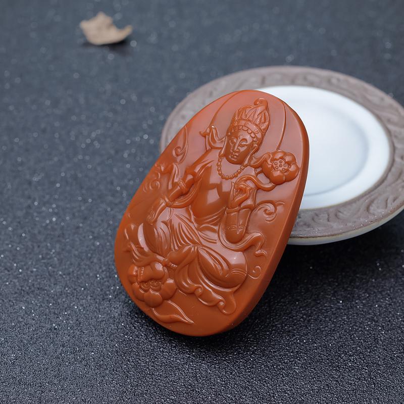 • 柿子红南红度母吊坠-红掌柜