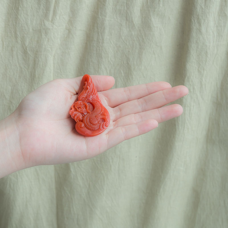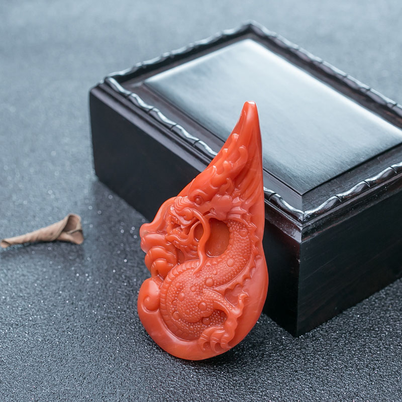 • 柿子红南红龙吊坠