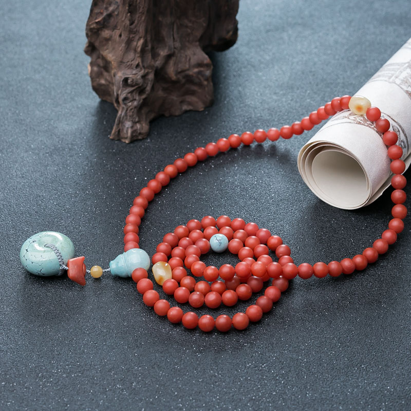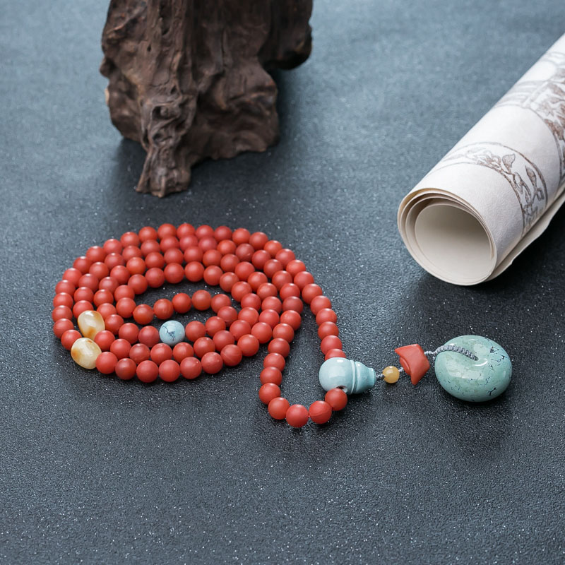 • 柿子红南红108佛珠