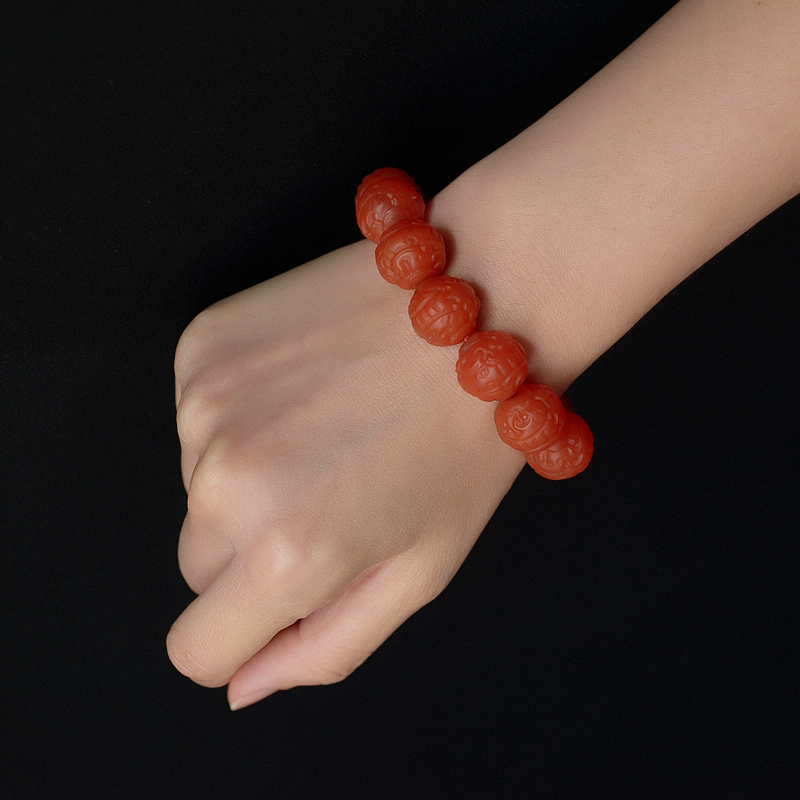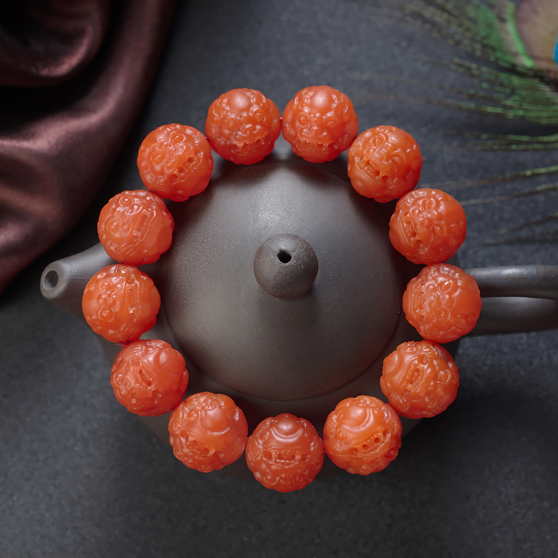 • [名  称] 柿子红南红貔貅珠单圈手串