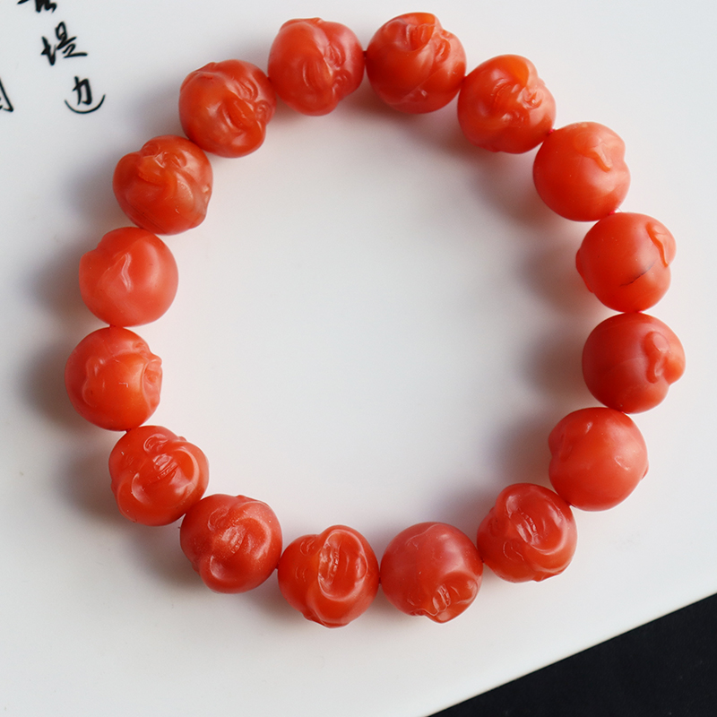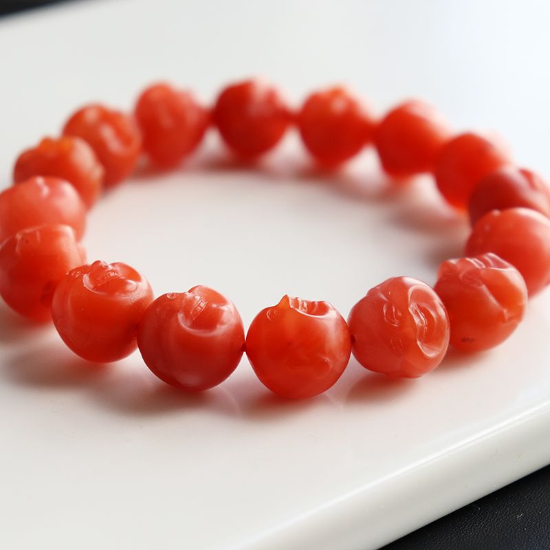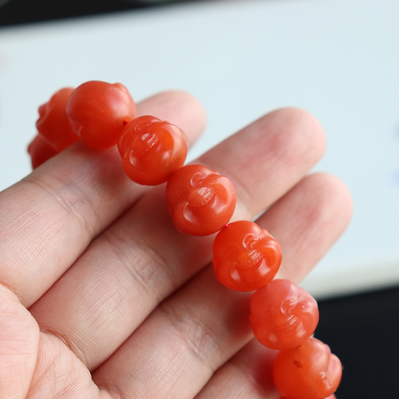 • [名  称] 柿子红南红玛瑙佛头单圈手串